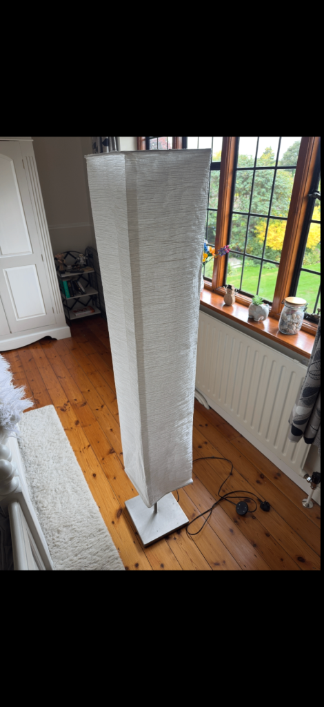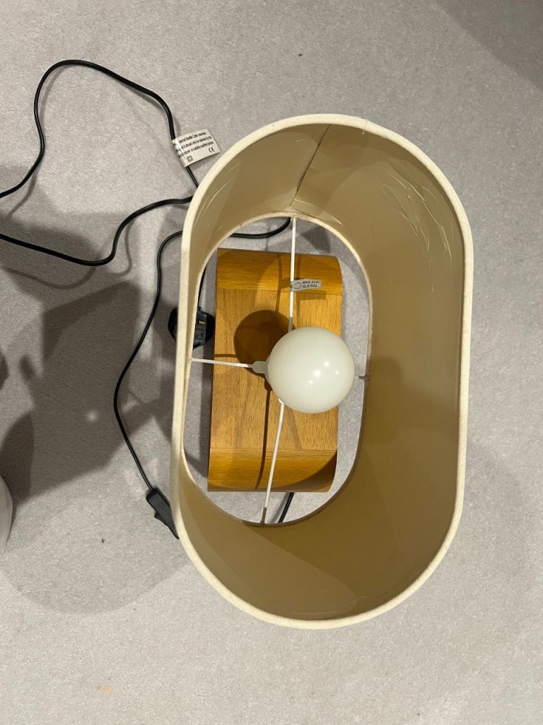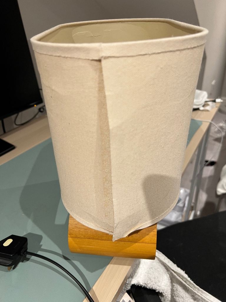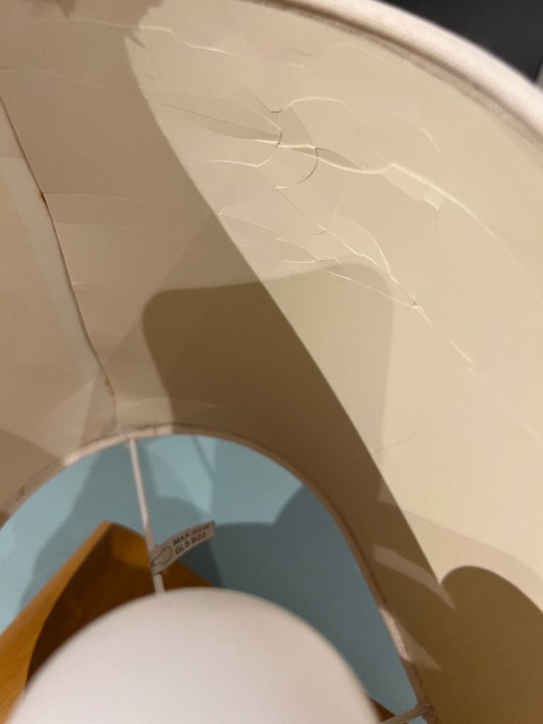 Clearing stuff as we are moving out of UK. This lamp has a few creases in the lamp shade and part of the stitch has came off, but still works perfectly.