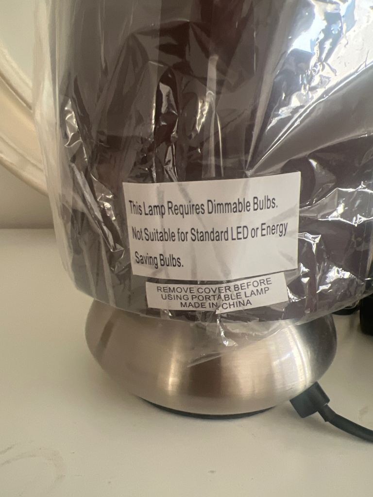 Brand new Pair of silver touch lamps with dark shades and lightbulbs
