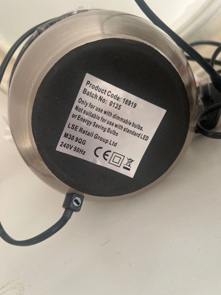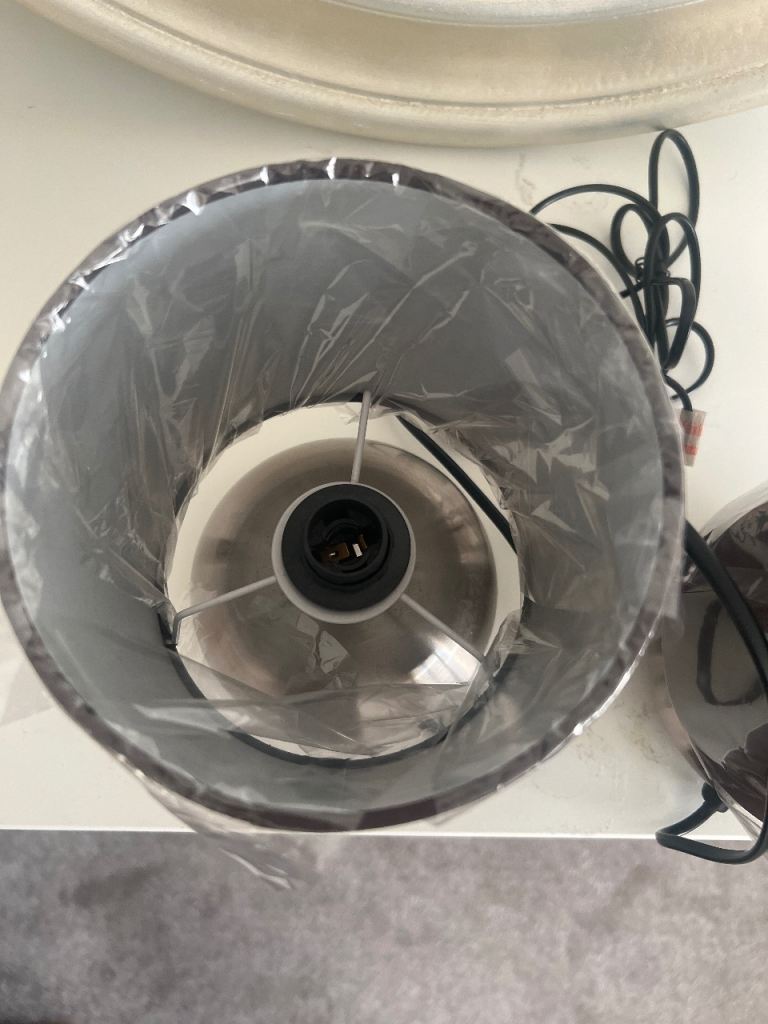 Brand new Pair of silver touch lamps with dark shades and lightbulbs from Dunelm.