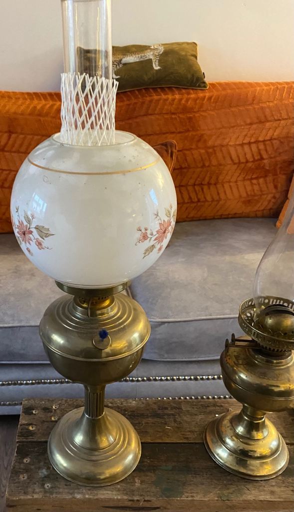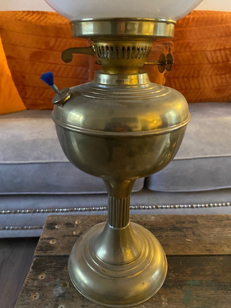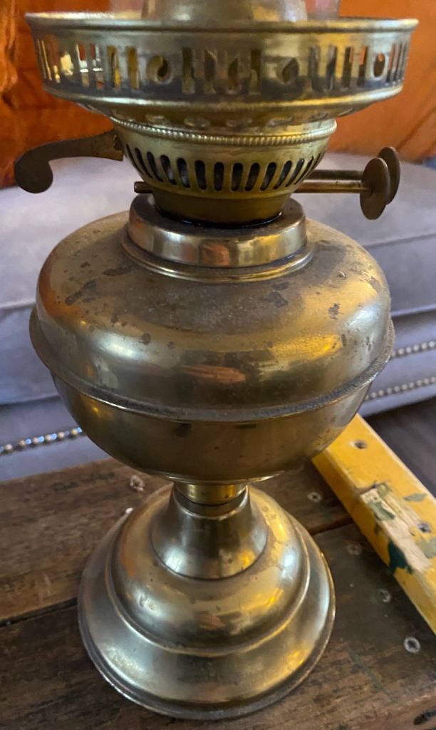 Brass and glass oil lamp vintage retro upcycle collectibles antique
