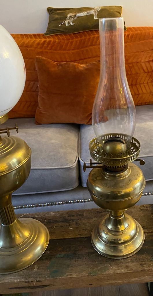X2 Brass and glass oil lamps/burners.