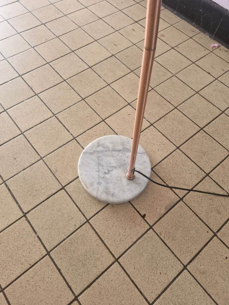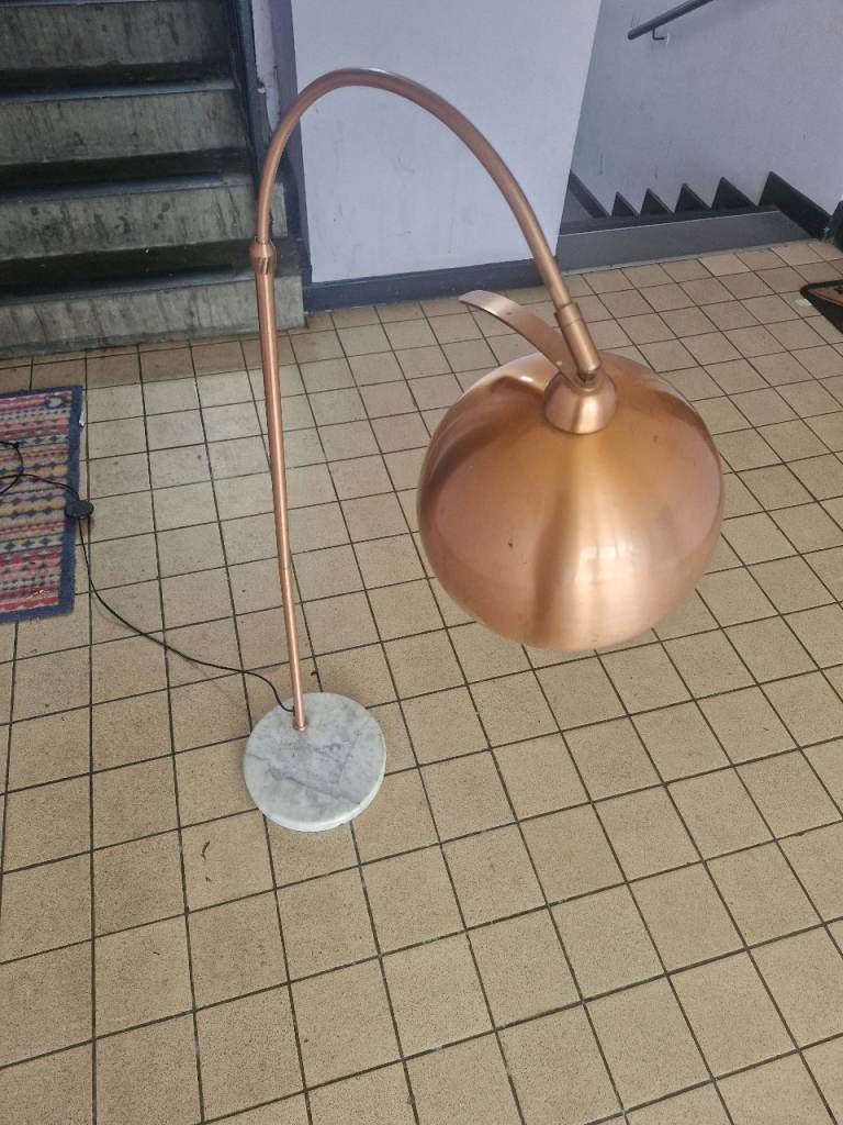 Lovely copper-effect arc floor lamp, perfect for a living room or office.