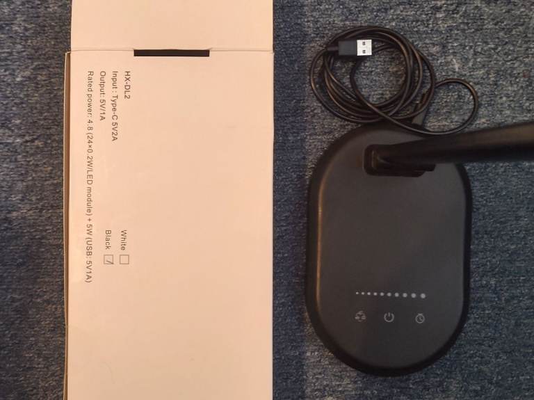 Long line desk lamp with timer, dimmable options & fold down feature. Comes with cable.