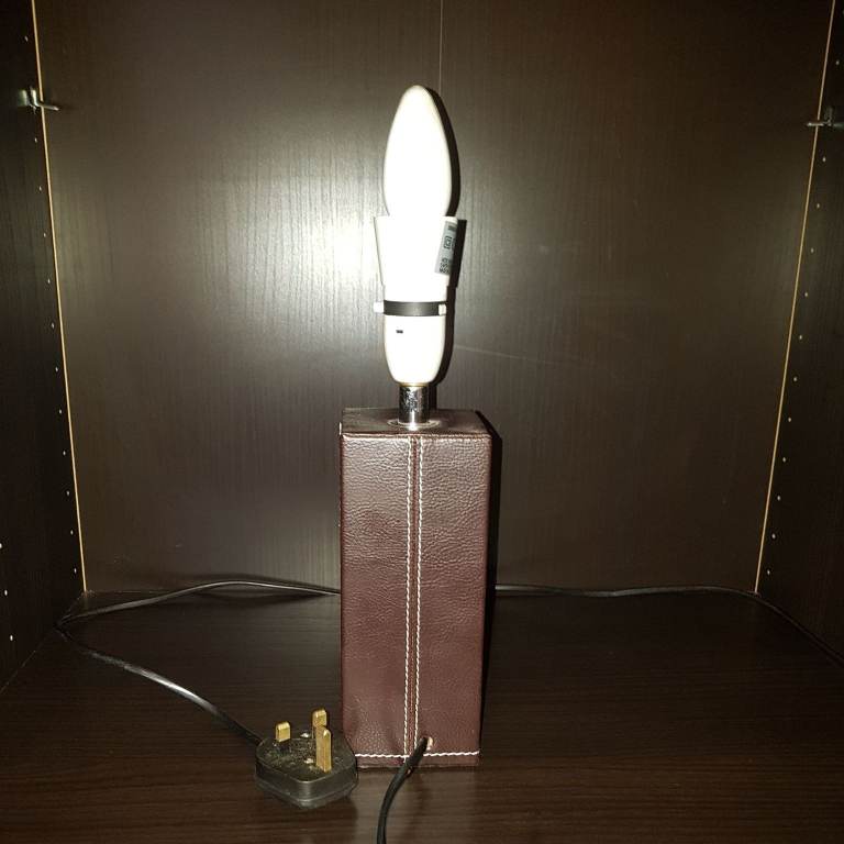 Silver bit moves but not when lamp is still / Faux leather style / Needs a bayonet bulb and shade