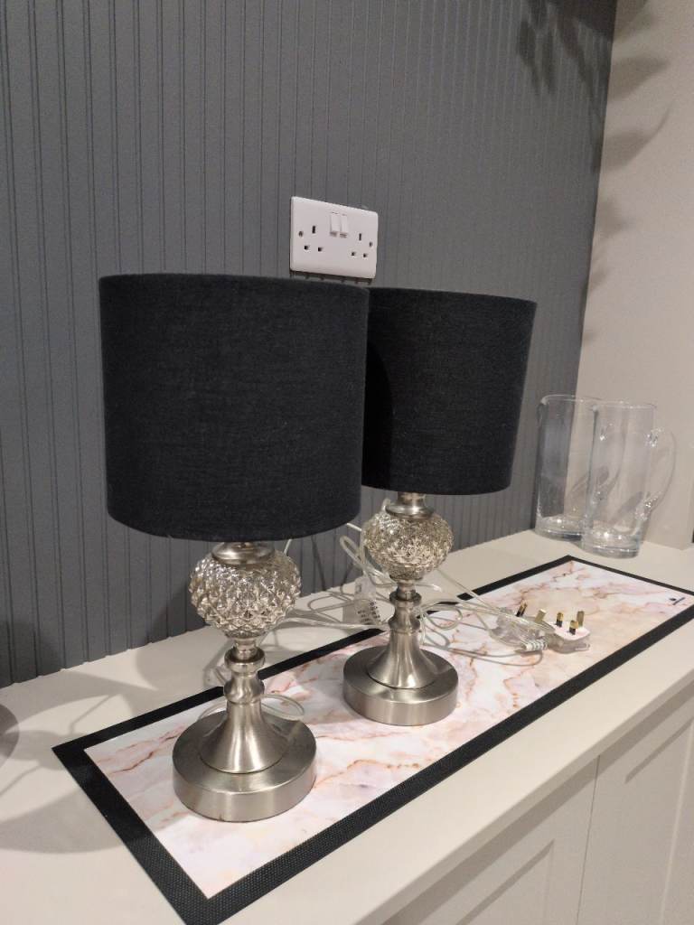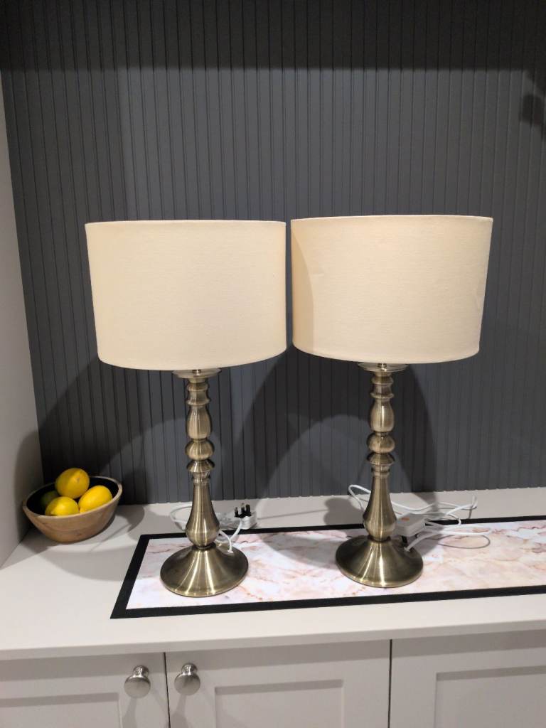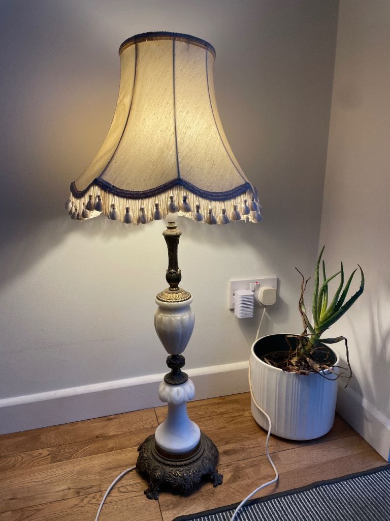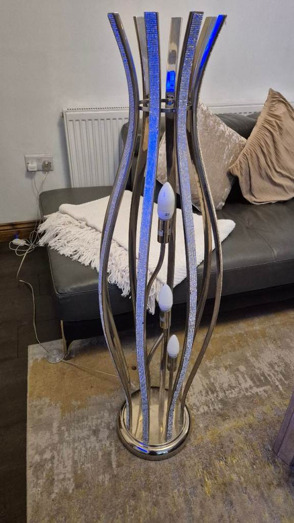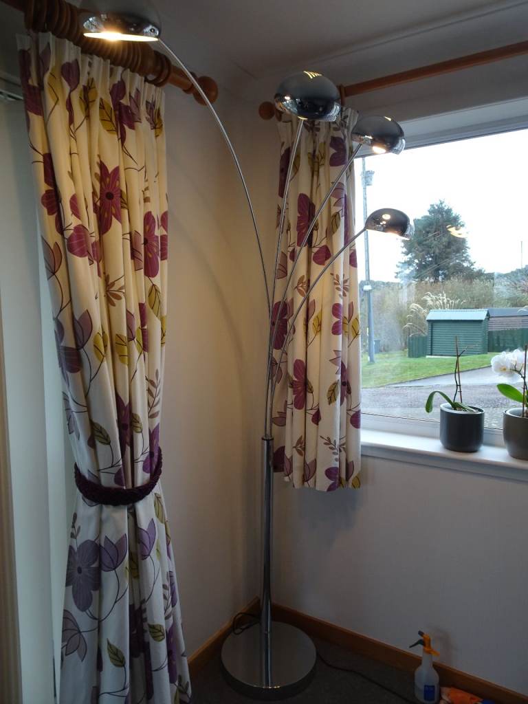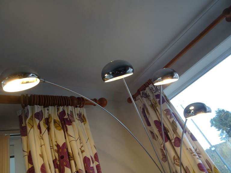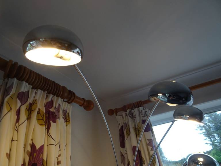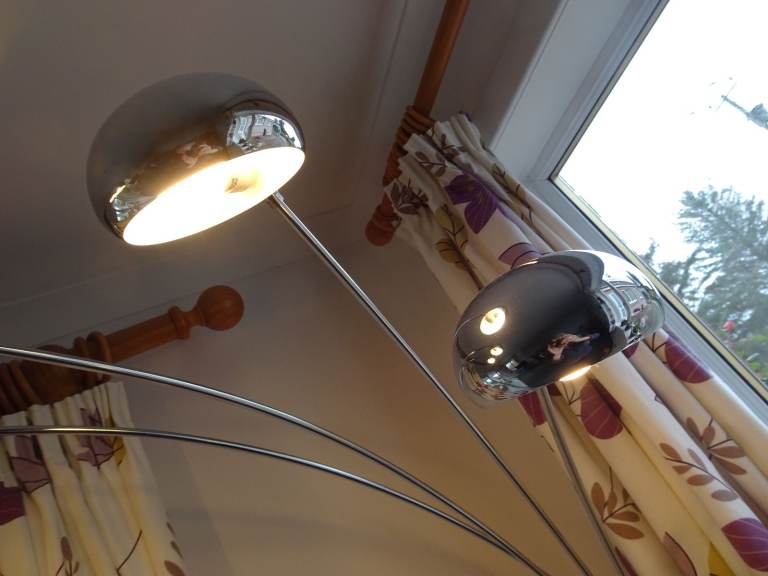 Floor lamp in excellent condition, the heads and stems move so you can position them where you need light eg reading in a chair, to shine on a picture etc etc. The base is heavy so will not overbalance.