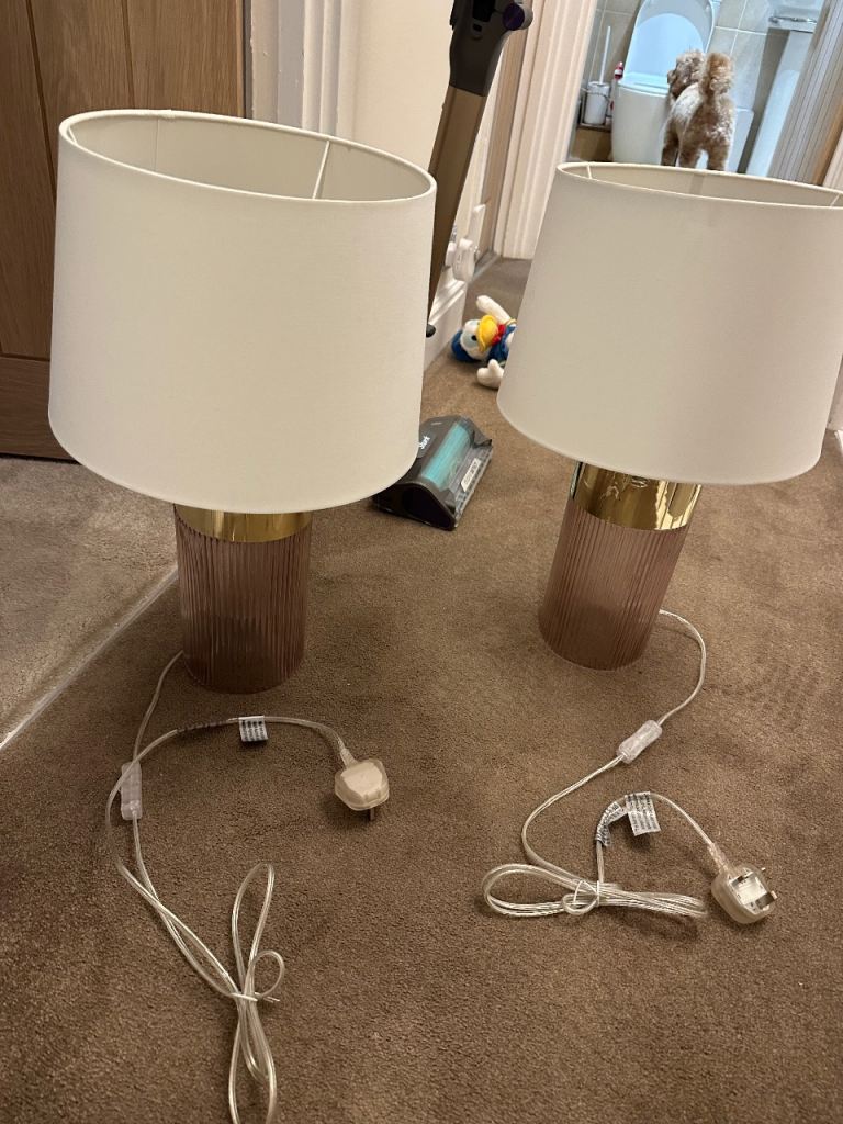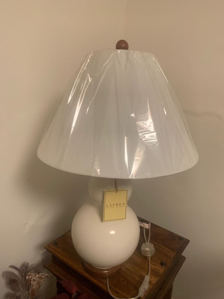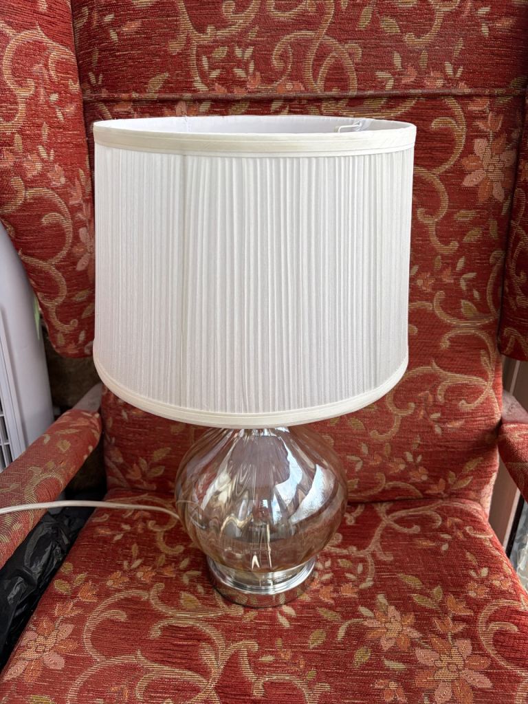 Glass table white lamp shade works fine glass table white lamp shade H14in W8in works fine