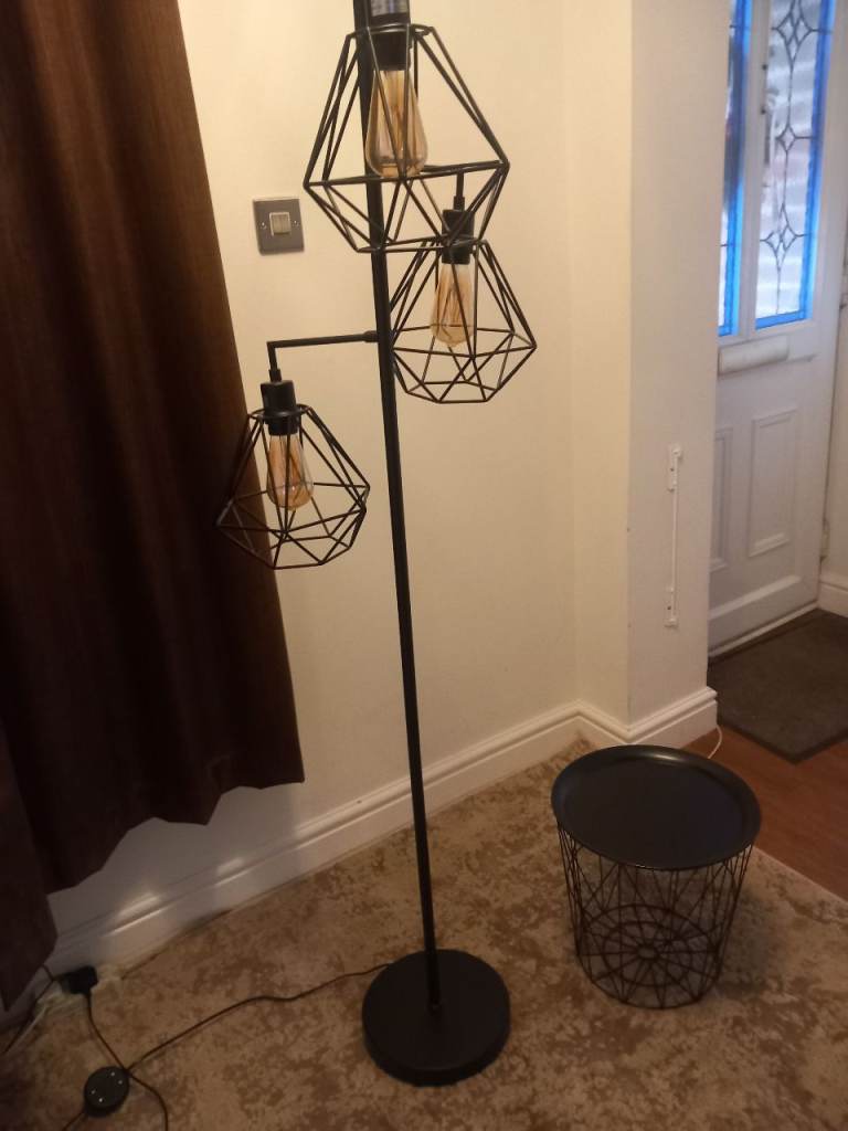 Birdcage Living Room Standing Floor Lamp with Wire Guard Industrial Rustic, Black Floor Light -240V Black, Very Nice Set Would Grass Any Room, A Smart Looking Set, Please Don't Hesitate to Ask Dave Any Questions, Cash on Collection.