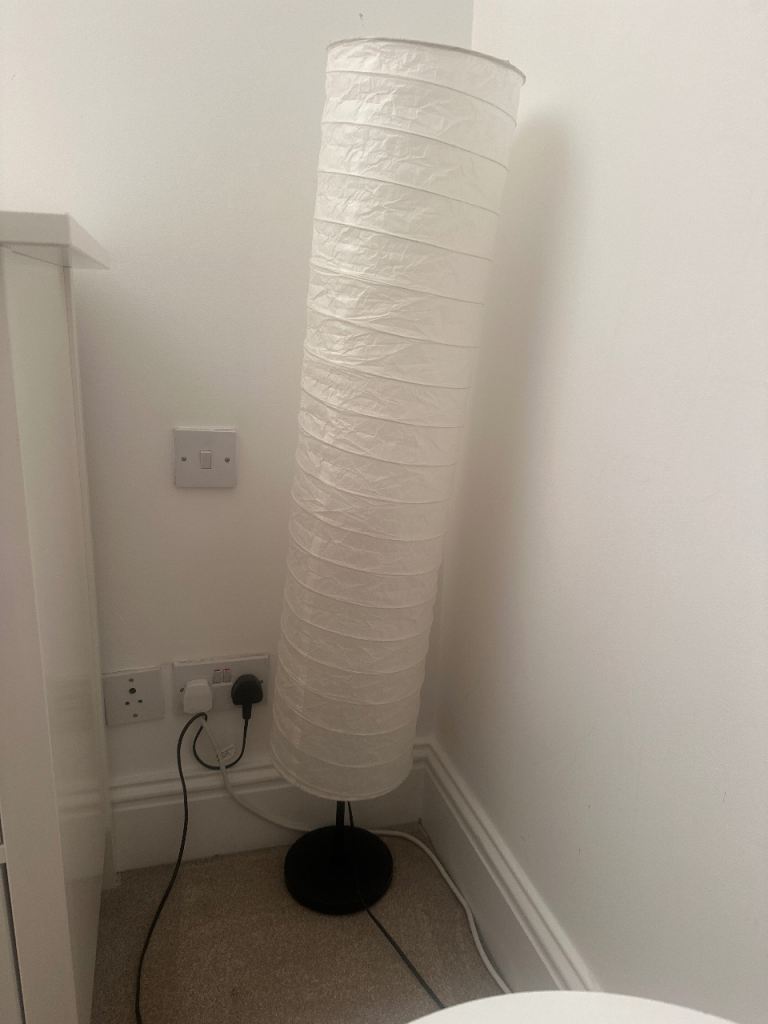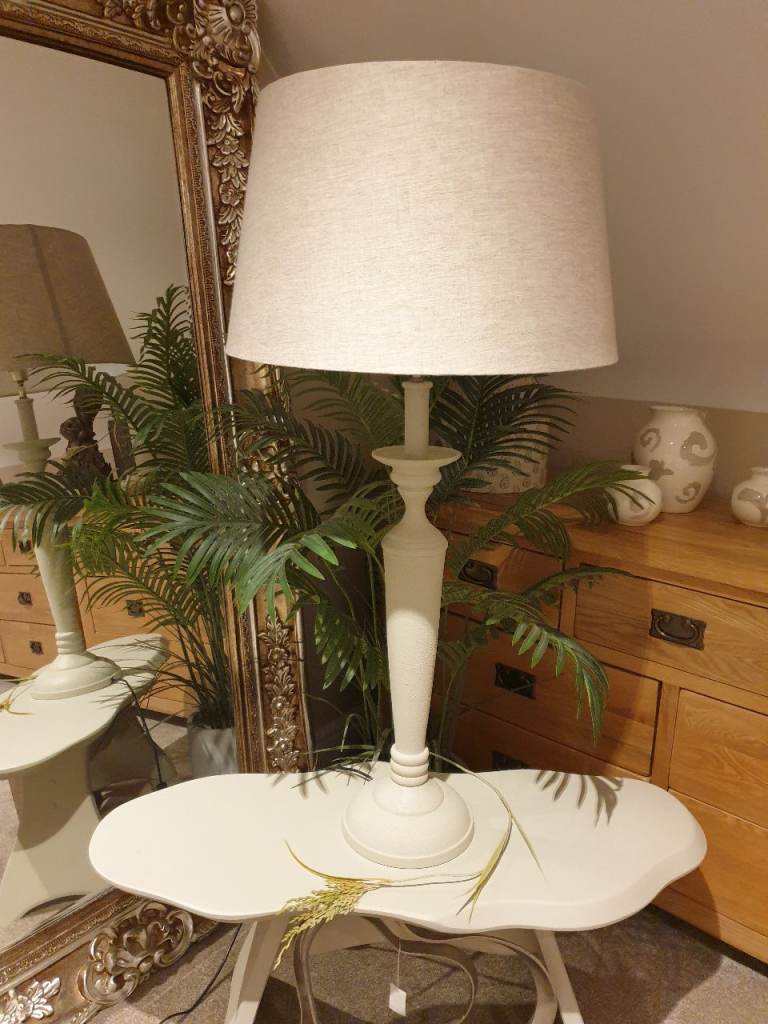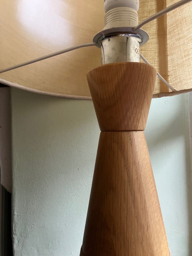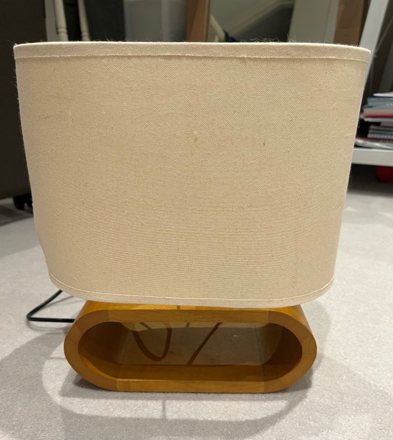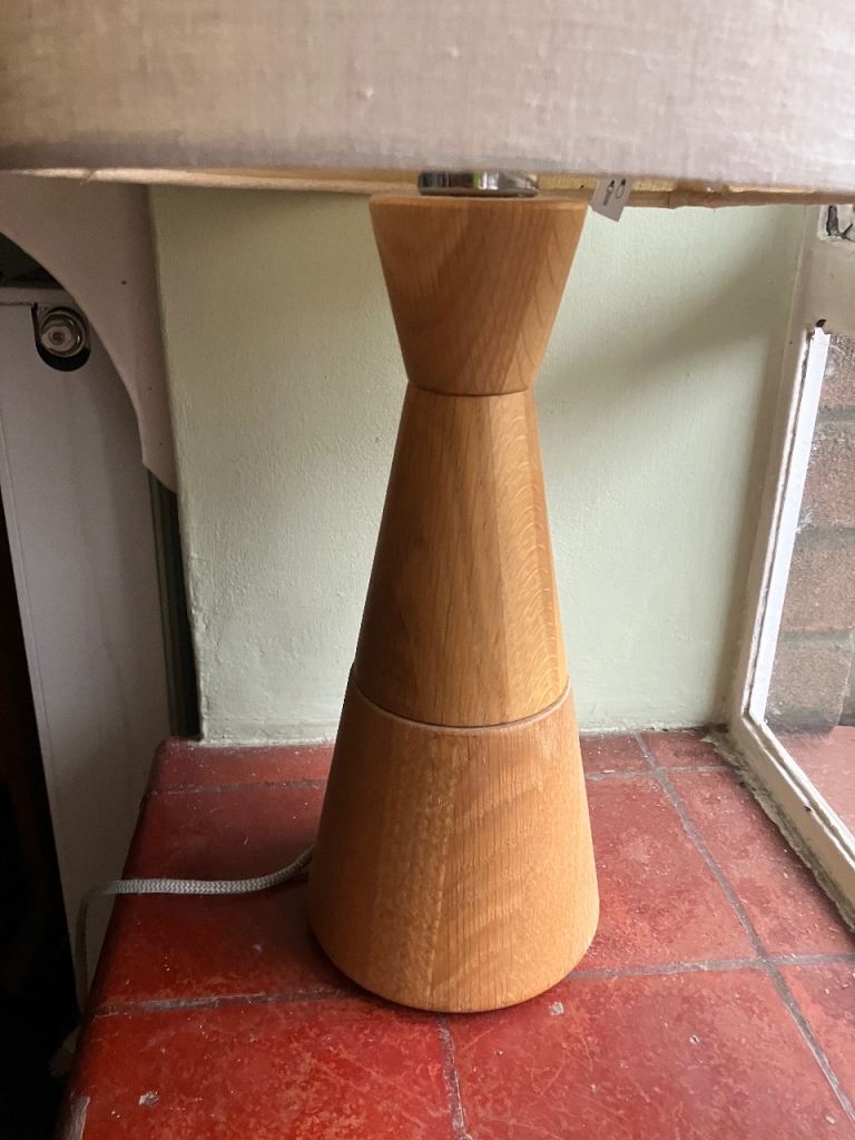 Wooden lamp in good condition. 21inches tall. Wooden base, beige shade - £35