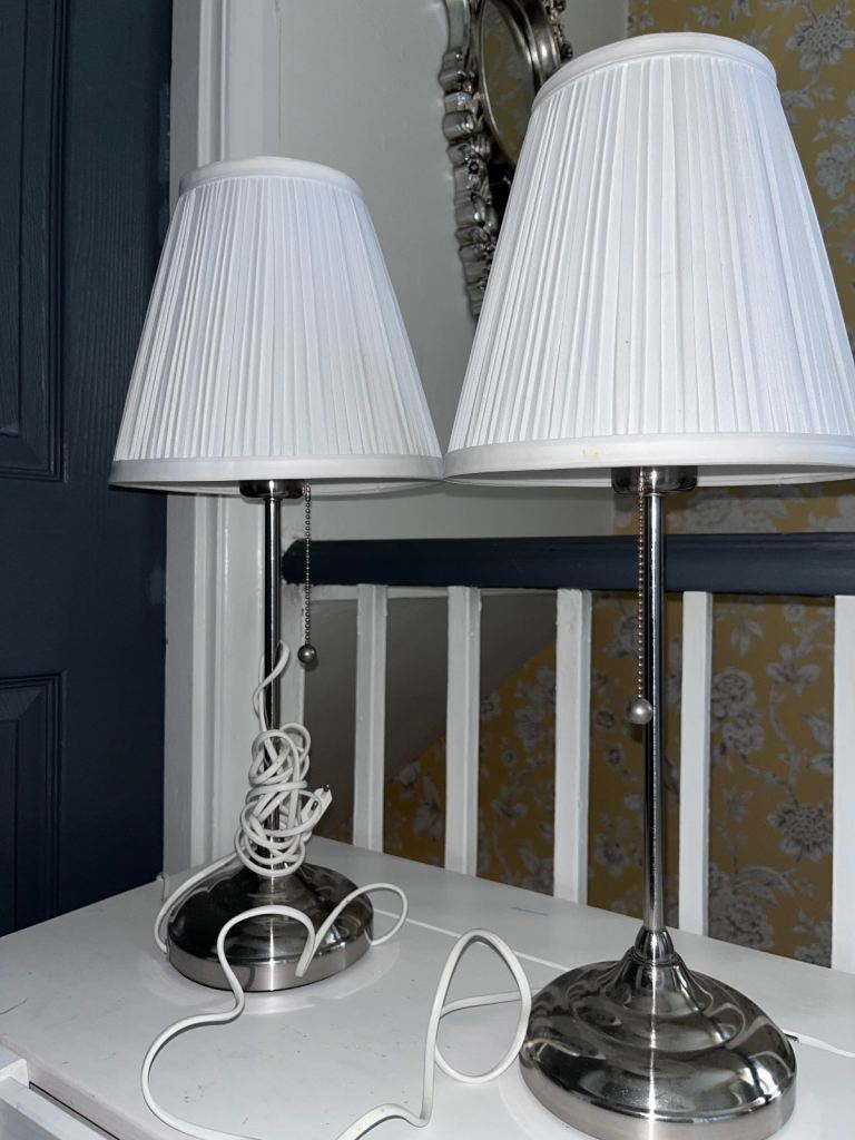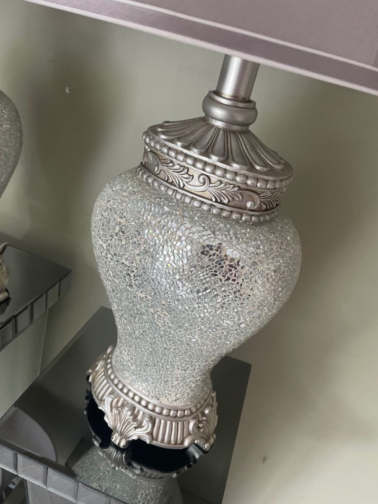 Lamps and stand smoked glass damage shown crack in 1 lamp