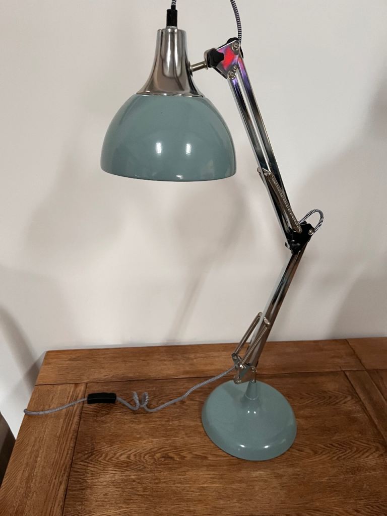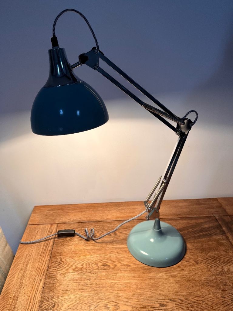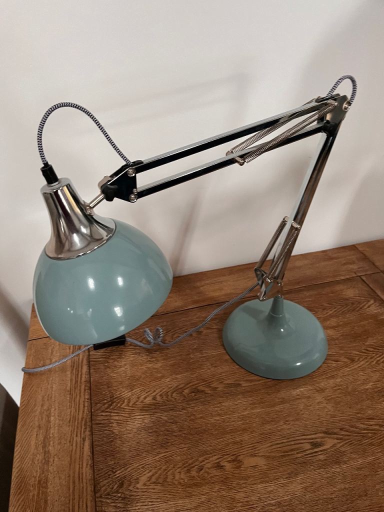 Large Anglepoise Style Office Desk Lamp -Duck Egg Blue Colour Shade & Base