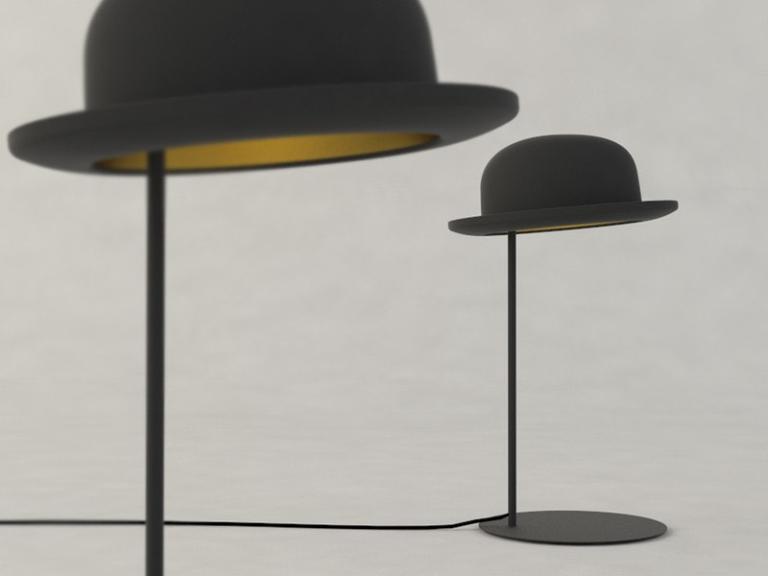 The Jeeves Table Lamp, by Jake Phipps for innermost. A minimal textured matt black base that supports a classic pure wool bowler hat. The top ‘hat’ section can be angled so you can ‘tip’ your hat to passers by. It’s the perfect talking point in any interior.