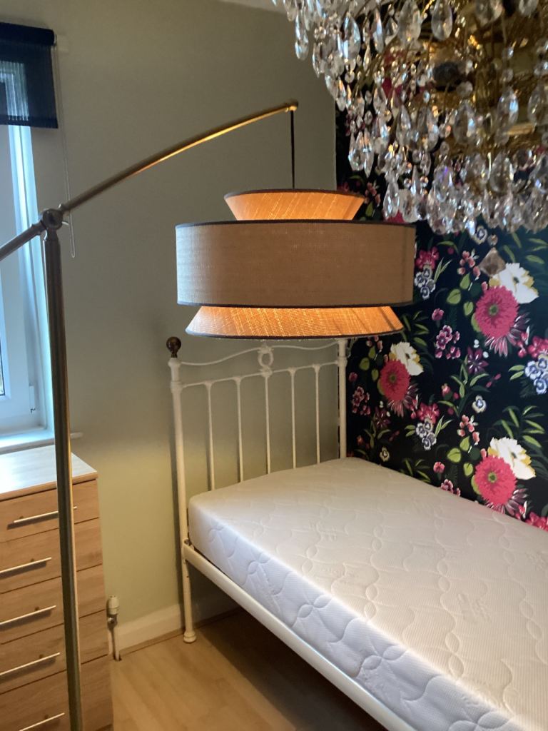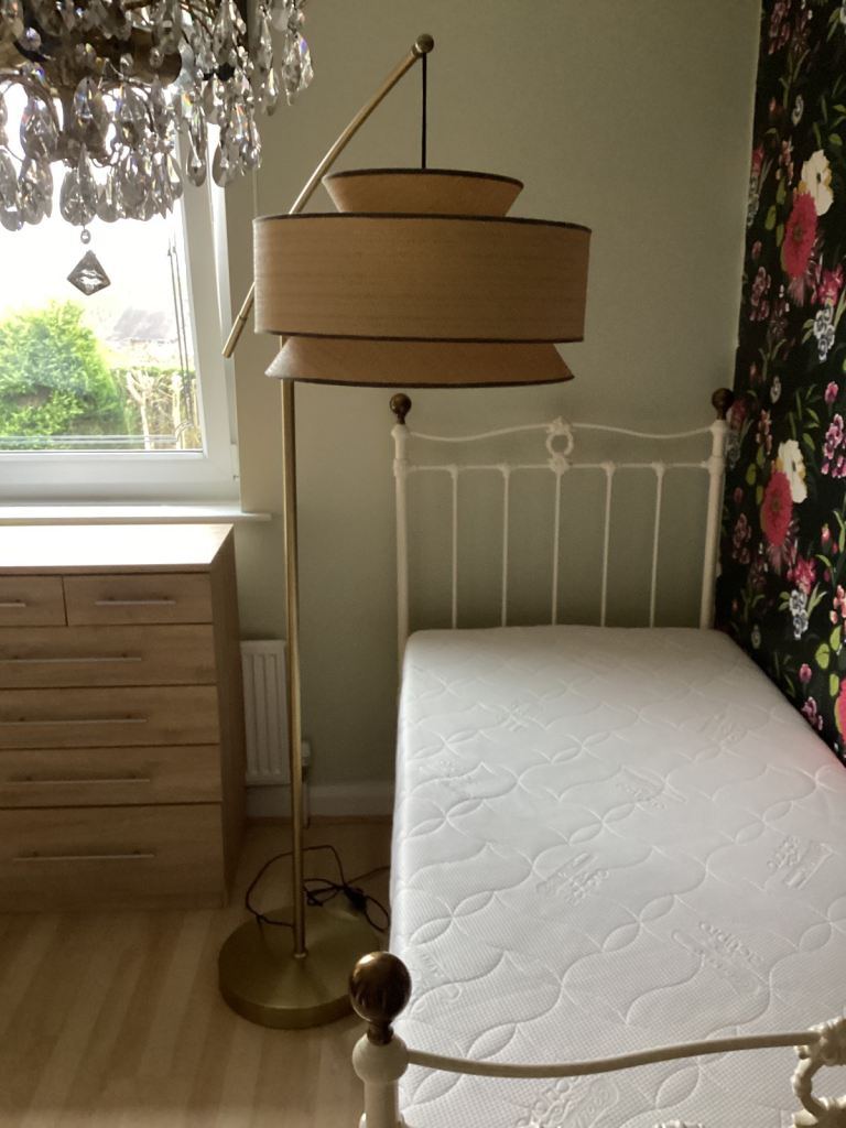 Clarke & Clarke , William Morris design lamp, very heavy gold colour, ratten shade , won’t go with decor brand new from next , thanks for looking