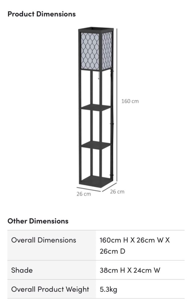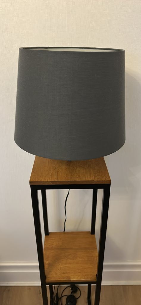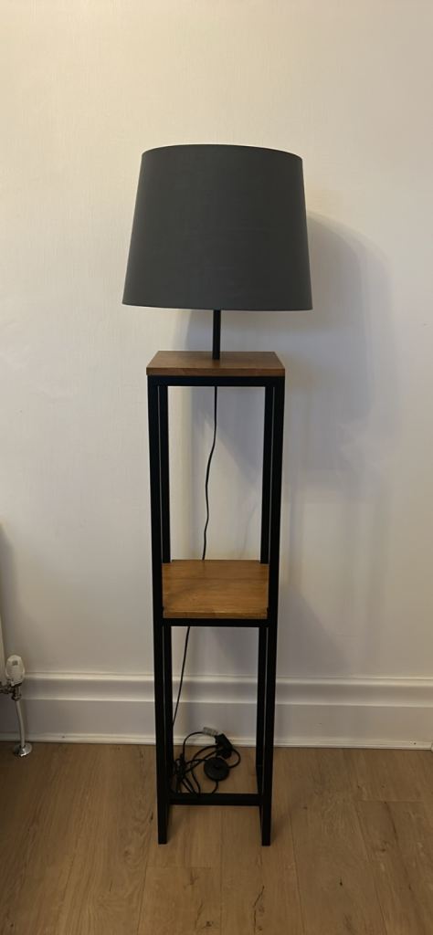 Posting for 13+ yearsNomad floor lamp with single shelf and grey shade. 2 available.