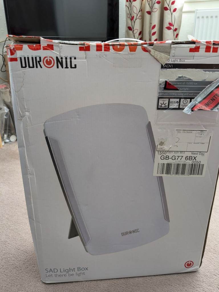 Selling my Duronic SADT2 light therapy device in excellent condition. This compact light therapy device provides 10,000 Lux of light to help improve mood and well-being, making it perfect for combating Seasonal Affective Disorder (SAD) during the winter months.