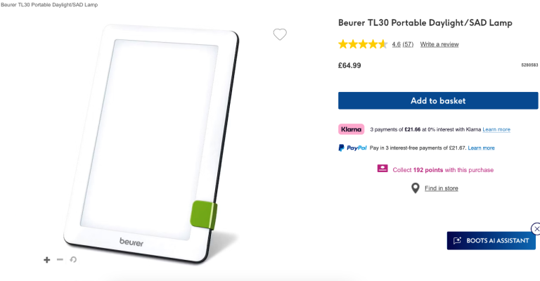 Beurer TL30 Portable Daylight/SAD Lamp