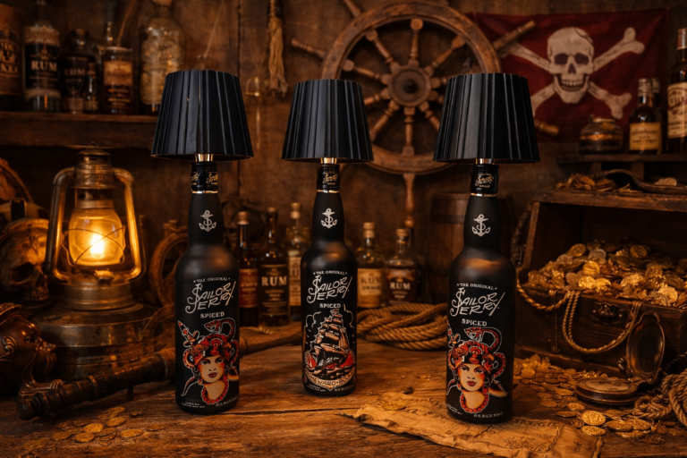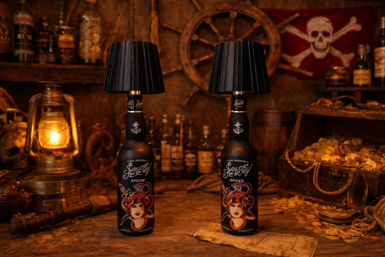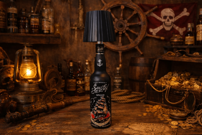 Add bold nautical character to your space with these handmade Sailor Jerry Spiced Rum bottle lamps, professionally upcycled from genuine Sailor Jerry bottles.