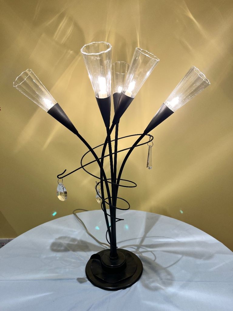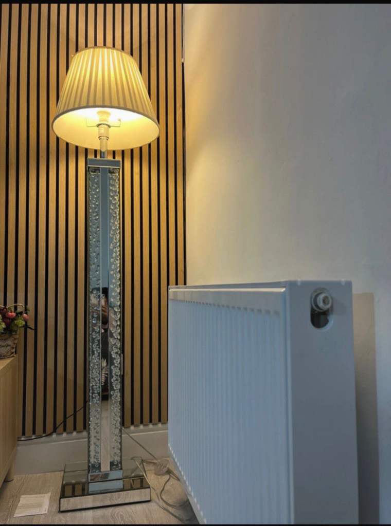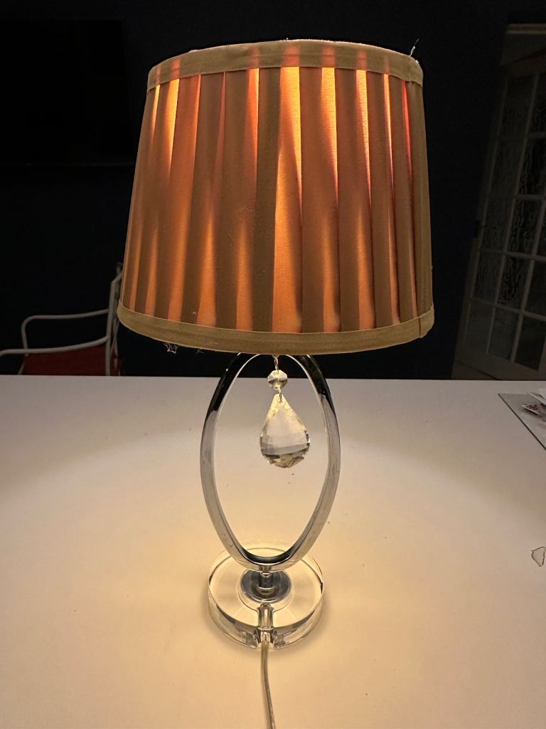 Posting for 1+ yearsSilver standing lamp with Philip smart bulb turn with Alexa With gray lamp shade