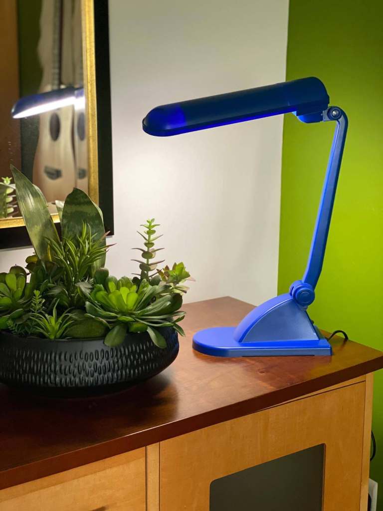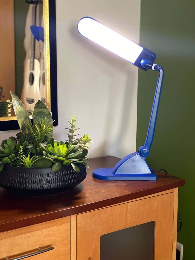 Posting for under a monthTable Desk Lamp fitted with 11 watt warm ambient glow tube/bulb for Reading, Office, Study, Bedroom