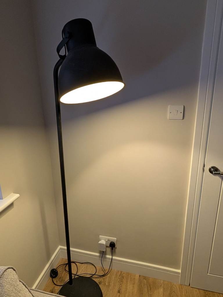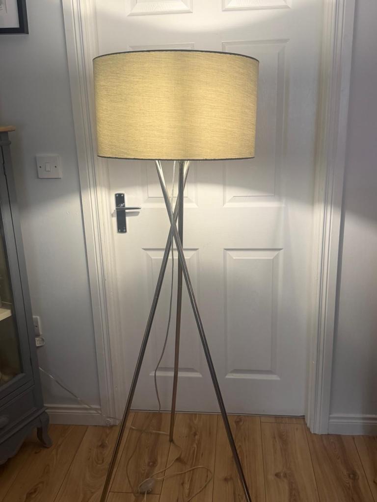 Two silver table lamps shades are brand new, they stand 53cm with shades.