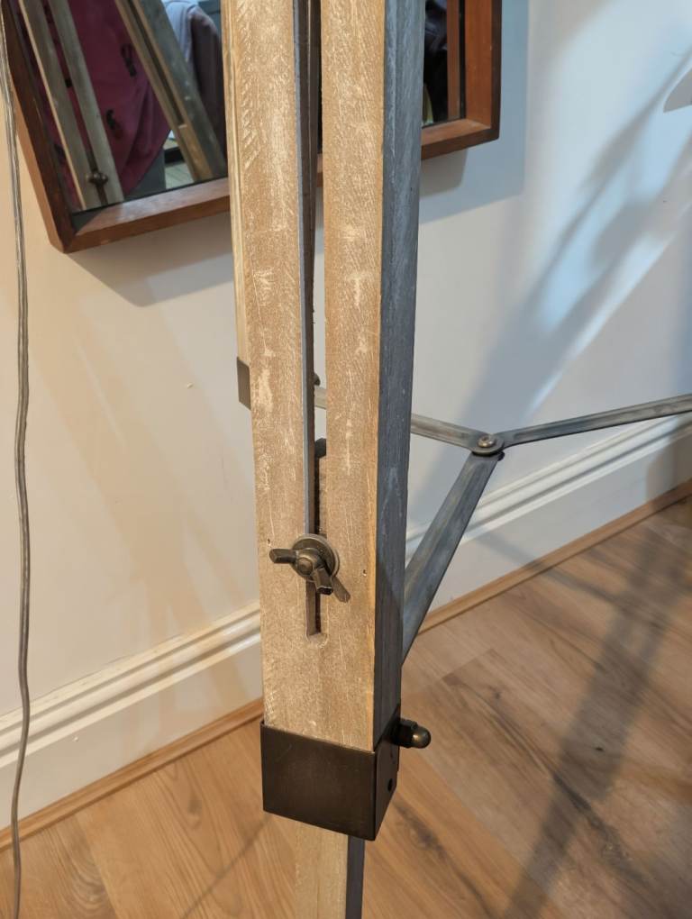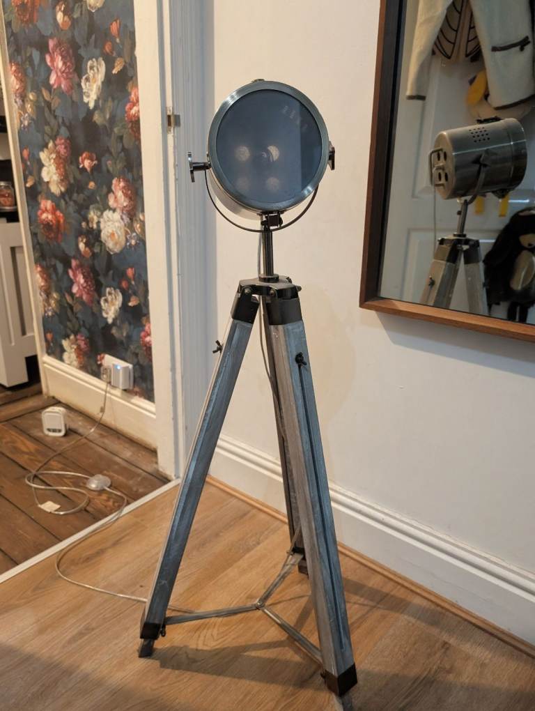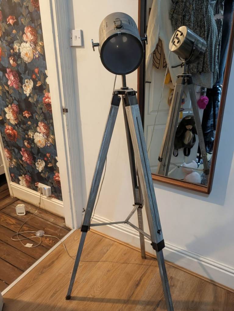 Posting for under a monthThe Range distressed wood tripod spotlight floor lamp
