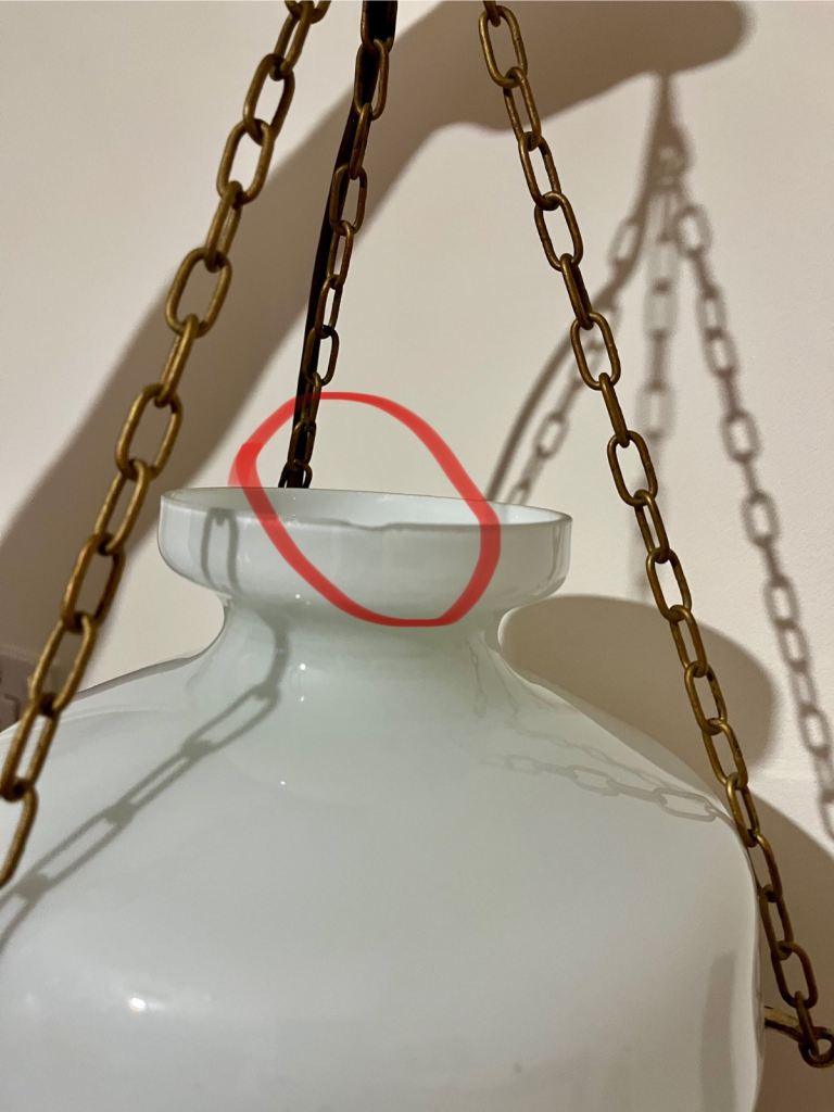 There is a small chip on the white glass is barely visible and do not affect the light itself