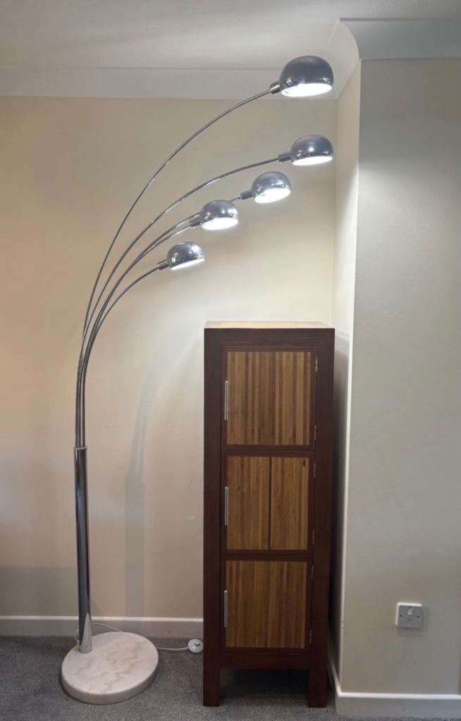 Vintage Retro 1970s 5 Arm Arc Floor Lamp With Marble Base.