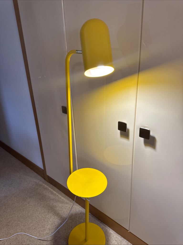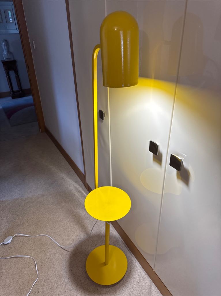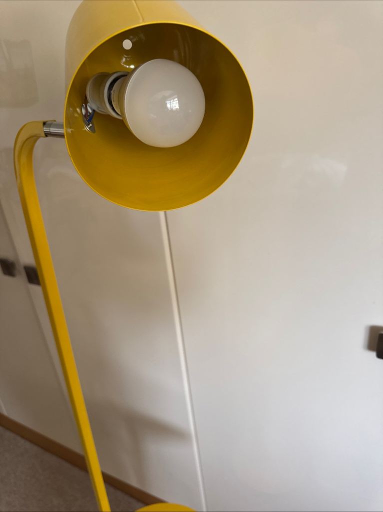 Posting for 5+ yearsYellow Metal Floor Lamp with Bell Shaped Angle-poise Lamp And Shelf