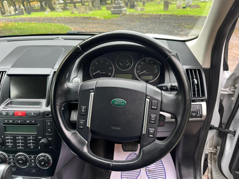 LAND ROVER FREELANDER 2 2.2 TD4 XS COMMANDSHIFT 4WD IN A WHITE EXTERIOR COLOUR WITH BLACK LEATHER INTERIOR... LOW WARRANTED MILES... COMES WITH A LONG MOT... COMES WITH A PART SERVICE HISTORY... FEATURING MULTIFUNCTION STEERING WHEEL WITH RADIO AND CRUISE CONTROLS... HEATED FRONT SEATS... AUTO LIGHTS AND WIPERS... FOG LIGHTS... FRONT AND BACK PARKING SENSORS... CD FM RADIO WITH BLUETOOTH CONNECTIVITY, BUILT IN SATNAV, MENU OPTIONS, KEYPAD AND A UX PORT... ELECTRIC ADJUSTABLE FRONT SEATS... SUSPENSION CONTROLS... PUSH BUTTON START... ELECTRIC ADJUSTABLE SIDE FOLDING MIRRORS... HEADLIGHT WASHER INJECTORS... CENTRAL LOCKING DOOR CONTROLS... HEADLIGHT ADJUSTMENT CONTROLS... ALL ROUND ELECTRIC WINDOWS... CUP HOLDERS... BACK HEATS ARM REST... ALLOY WHEELS WITH DECENT TREAD ALL ROUND... WARRANTY INCLUDED... ALL PART EXCHANGES ARE WELCOME... OPTIONAL NATIONWIDE DELIVERY EXTRA... BOOK-INS AND VIDEO VIEIWNGS ARE AVAILABLE... TEST DRIVES ARE WELCOME... FOR MORE INFORMATION CALL US TODAY ON 07309185330.