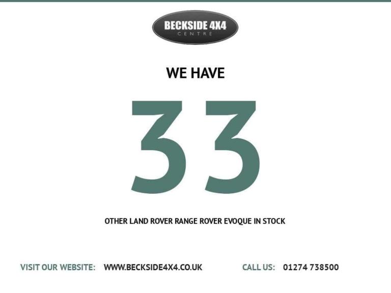 AA Inspected for Your Peace of MindTake advantage of our low-rate, no-deposit finance options. We're open 7 days a week, and this vehicle must be seen to be fully appreciated. It's in excellent condition, boasts a fantastic specification, and offers great value. Features include:Ivory LeatherSat Nav19"" AlloysAnd much more!Over 30 Evoques In StockPlease call us for more details. We offer competitive part-exchange prices. This vehicle comes AA Vehicle Inspected, with a comprehensive 128-point report ensuring its roadworthiness. It also includes Gold Plus Warranty for added peace of mind.As an approved AA dealer, we offer:128 Point AA Inspection12 months free AA Breakdown CoverAA Vehicle CheckApproved Finance OptionsWe are a family-run business with over 50 years of experience in the motor trade. Nationwide delivery is available, and we welcome exporters. We accept debit and credit cards.We are authorised and regulated by the Financial Conduct Authority.Visit our website for up to 40 detailed pictures per vehicle: [Website URL removed] keep around 100 vehicles in stock and are proud to be Yorkshire's largest 4x4 dealer. Most vehicles come with:AA Inspection Report12 months MOTServicingValetedHPI clearWe offer PX, finance, and warranties on most cars. Drive-away insurance is also available (subject to status).For more information, call our sales team at 01274 738500, or reach Richard via WhatsApp or text at 07796612999.For Sat Nav, use postcode BD2 1QN.Due to our large stock, not all vehicles are stored on-site, so please call ahead to avoid any disappointment..
