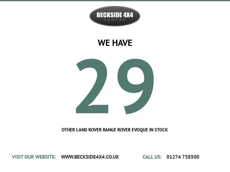 AA Inspected for Your Peace of MindTake advantage of our low-rate, no-deposit finance options. We're open 7 days a week, and this vehicle must be seen to be fully appreciated. It's in excellent condition, boasts a fantastic specification, and offers great value. Features include:Panoramic Glass RoofSat NavPrivacy GlassBlack And Red Leather20"" AlloysAnd much more!Over 20 Evoques in stockPlease call us for more details. We offer competitive part-exchange prices. This vehicle comes AA Vehicle Inspected, with a comprehensive 128-point report ensuring its roadworthiness. It also includes Gold Plus Warranty for added peace of mind.As an approved AA dealer, we offer:128 Point AA Inspection12 months free AA Breakdown CoverAA Vehicle CheckApproved Finance OptionsWe are a family-run business with over 50 years of experience in the motor trade. Nationwide delivery is available, and we welcome exporters. We accept debit and credit cards.We are authorised and regulated by the Financial Conduct Authority.Visit our website for up to 40 detailed pictures per vehicle: [Website URL removed] keep around 100 vehicles in stock and are proud to be Yorkshire's largest 4x4 dealer. Most vehicles come with:AA Inspection Report12 months MOTServicingValetedHPI clearWe offer PX, finance, and warranties on most cars. Drive-away insurance is also available (subject to status).For more information, call our sales team at 01274 738500, or reach Richard via WhatsApp or text at 07796612999.For Sat Nav, use postcode BD2 1QN.Due to our large stock, not all vehicles are stored on-site, so please call ahead to avoid any disappointment..