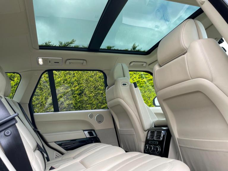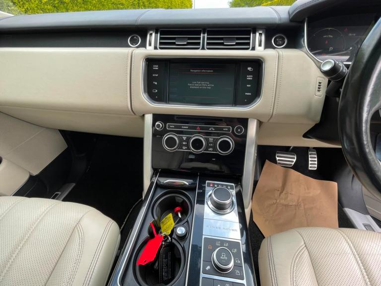 3 rear 3 point seatbelts, Auto lock system when vehicle in motion, Driver and passenger airbags, Driver/front passenger head+thorax airbag, Drivers knee airbag, Front seatbelt pretensioners with force limiters, Front side airbags, Immobiliser, Keyless entry, Locking wheel nuts, Perimetric and volumetric anti theft alarm, Remote central locking, Anti-lock brake system, CBC - (Cornering brake control), DSC - Dynamic Stability Control, Electronic Brakeforce Distribution + Brake Assist, Electronic parking brake, Electronic Stability Programme, Electronic traction control, Hill descent control, Roll stability control, Diesel particulate filter, Adaptive dynamics, Electronic air suspension/variable ride height, Terrain Response 2 Auto, Automatic dimming rear view mirror, Body colour mirror caps, Electric heated, adjustable, folding and auto dimming door mirrors with memory + approach lamps, Acoustic windscreen, Electric windows with one touch open, Heated windscreen, Rain sensor windscreen wipers, Rear wiper, Body coloured bumpers, Illuminated tread plates with Autobiography lettering, Metallic paint, Panoramic glass sunroof/electric blind, Twin exhaust tailpipe, Automatic headlamp activation, Follow me home headlights, Front fog lights, High beam assist, Xenon headlights with LED signature lights + auto levelling and power wash, Trailer stability assist, Front and rear winged headrest, Front seat back map pockets, Heated front seats, Isofix child seat preparation, Figured macassar veneer, Front & rear carpet mats with contrast edging and metal corners, Interior mood lighting, Luggage compartment lighting, Illuminated driver/passenger vanity mirrors, 12V accessory sockets - front and rear, 12V power point in luggage area, Centre cooler storage box, Electric adjustable steering column, Front and rear cupholders, Front centre armrest, Front centre console storage box, Heated wood/leather steering wheel, Leather headliner, Loadspace cover, Luggage net, Multi function steering wheel, Rear centre armrest with storage compartment, Semi-aniline leather upholstery, Soft close doors, Through load facility, 4 zone climate control, Parking heating with remote, Homelink (programmable garage door opener), Power tailgate, Push button starter, Adaptive cruise control with queue assist and intelligent emergency brake, Dynamic response, Electronic power assisted steering, Park distance control, Reverse traffic detection with blind spot monitor and closing vehicle sensor, Surro