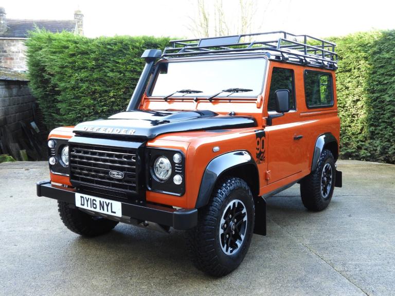 2016/16 LAND ROVER DEFENDER 90 2.2TDCI 150 BHP LIMITED EDITION ADVENTURE STATION WAGON,1 OF ONLY 600 ADVENTURE MODELS BUILT AND REGISTERED,THIS IS ONE OF THE VERY LAST OFF THE PRODUCTION LINE IN 2016 !!!!,GLEAMING METALLIC PHOENIX ORANGE WITH FACTORY METALLIC SANTORININ BLACK PACK,ONLY 6900 GENUINE MILES FROM NEW WITH JUST 1 PREVIOUS OWNER AND A FULL SERVICE HISTORY FROM LAND ROVER MAIN DEALER AND SPECIALIST,FULL LIMITED EDITION ADVENTURE MODEL SPECIFICATION,FULL BLACK LEATHER INTERIOR,PREMIUM LAND ROVER ADVENTURE LEATHER FRONT SEATS,4 SEATS (REAR LOADSPACE HAS 2 FORWARD FACING SEATS),AIR CONDITIONING,HEATED FRONT AND REAR SCREENS,HEATED SEATS,ELECTRIC WINDOWS,CENTRAL LOCKING,ALPINE CD STEREO SYSTEM,BLUETOOTH,LEATHER CLAD DOOR TRIMS,STEERING WHEEL AND GEAR STICK GAITERS,ALUMINIUM INTERIOR DOOR HANDLES,GEAR KNOBS AND TRIMS THROUGHOUT,BLACK ALCANTRA HEADLINING,BLACK PREMIUM LAND ROVER CARPETS THROUGHOUT,12V POWER SOCKETS,PREMIUM CENTRE CUBBY BOX AND CUP HOLDERS,GLOSS BLACK CENTRE DASHBOARD,ADVENTURE OVER-CARPETS THROUGHOUT,2 KEYS/REMOTES,ABS/TRACTION CONTROL/HIGH,LOW RANGE AND CENTRE DIFF LOCK,16"" LIMITED EDITION ADVENTURE DUAL FINISH ALLOY WHEELS WITH GOODYEAR WRANGLER MTR ALL-TERRAIN TYRES,ADVENTURE MUDFLAPS FRONT AND REAR,REAR STEP,ADVENTURE SPEC ROOF RACK AND REAR LADDER,LAND ROVER ALUMINIUM UNDER-BODY SIDE PROTECTION GUARDS AND FRONT DIFF/STEERING GUARD,LAND ROVER RAISED AIR INTAKE/SNORKEL,LAND ROVER FACTORY LED LIGHTS THROUGHOUT,THIS IS YOUR OPPURTUNITY TO PURCHASE ONE OF THE VERY LAST TRUE DEFENDERS BUILT AND REGISTERED BY LAND ROVER AND ONE OF ONLY 600 ADVENTURE MODELS BUILT !!!!!,ULTRA LOW GENUINE MILEAGE OF ONLY 6900 MILES!!!!,IMMACULATE AND AS NEW CONDITION THROUGHOUT THIS DEFENDER HAS GLEAMING/UNMARKED BODYWORK,IMMACULATE/AS NEW INTERIOR AND A CHASSIS/UNDERSIDE THAT BENEFITS FROM BEING CORROSION PROTECTED FROM NEW WITH LANOGUARD,YOU DEFINITELY DONT WANT TOO MISS THIS STUNNING ULTRA LOW MILEAGE LIMITED EDITION DEFENDER 90 ADVENTURE STATION WAGON IT HAS BEEN COSSETED FROM NEW AS ITS STUNNING CONDITION SHOWS ITS A TRUE INVESTMENT FOR THE FUTURE FOR SURE,THIS DEFENDER HAS JUST BEEN FULLY SERVICED AND PREPARED BY OURSELVES TO OUR USUAL HIGH STANDARD WITH NEW MOT READY TO DRIVE AWAY,FULLY HPI CLEAR AND MILEAGE CHECKED,ROAD TAX JUST £345 PER YEAR,6 MONTHS EXTENDABLE WARRANTY GIVEN,FINANCE AVAILABLE,FCA REGISTERED,PART EXCHANGE TAKEN,DELIVERY INCLUDED IN THE ASKING PRICE !!!!!,LAND ROVER SPECIALIST 30 YEARS,J A 4X4 OF CHESHIRE LIMITED IS AN INDEPENDENT LAND ROVER SPECIALIST EXCLUSIVELY OFFERING LAND ROVER DEFENDER & RESTORED SERIES LAND ROVERS !!!,MORE PHOTOS AND WALKAROUND VIDEO AVAILBLE !!,WE HAVE 2 OF THESE LIMITED EDITION DEFENDER 90 ADVENTURES IN STOCK,THE OTHER IS CORRIS GREY WITH 2000 MILES ONLY MESSAGE FOR MORE DETAILS !!!!