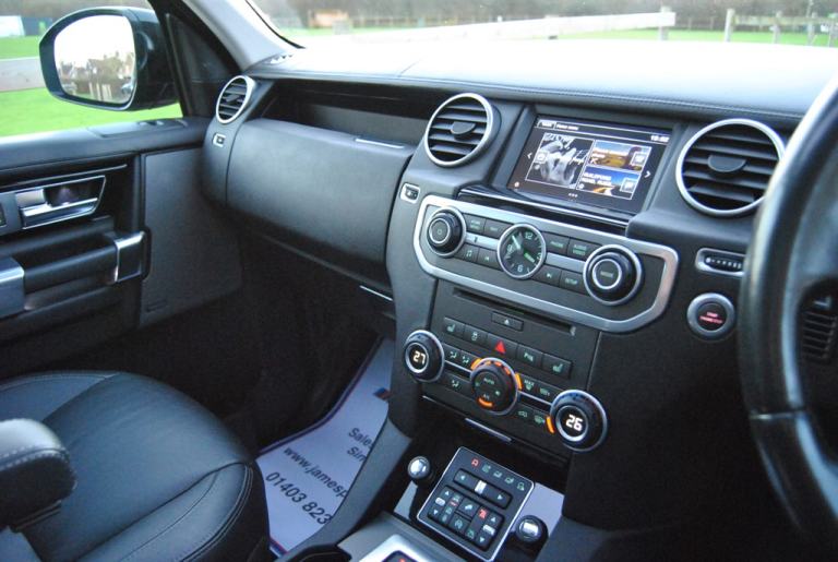 Stunning 2016 Land Rover Discovery 4 3.0 SDV6 Landmark Edition 7 Seater finished in Santorini Black Metallic with Premium Black Leather Trim. One of the last of this popular model built which benefits from being EU6 / Ulez Compliant and lower road tax. 51.000 miles with a full service history including a recent service an Cambelt Replacement in November 2025. Key Features & Specifications Luxury & Interior: Windsor leather with unique dashboard/armrest trim. Meridian Sound System. Heated front/rear seats, memory electric front seats, heated steering wheel. Scripted treadplates & puddle lights, Click & Go holders. Panoramic sunroof with Alpine roof. Exterior & Styling: 20"" 5-split-spoke alloy wheels. Narvik Black grille, side vents, and door handles. Privacy glass (rear). Extended bright finish roof rails. Landmark badging. Technology & Practicality: Keyless entry & go. Rear entertainment screens with remotes. Front/rear parking sensors, rear camera, navigation. Air suspension with adjustable height/modes. A superb low mileage example which represents itself in fantastic order throughout. James Paul Car Sales is a family run business in a small village of Bucks Green conveniently situated on the Surrey and Sussex border. Established for over 35 years every car we offer is carefully hand selected and will come with a comprehensive provenance check. All of our vehicles are subject to a thorough pre delivery inspection through our workshops including a fresh MOT and service where required. Please ask us about our extremely competitive finance packages or Visit our website [Website URL removed] to create your own Finance Quote and Apply to help you fund your new car. Part exchanges welcome either way if you are looking to trade up or down. Please note that we do not accept reservations on cars via third party sites, if you wish to put a deposit on a car, please call 01403 823723 and speak to a member of the James Paul Car Sales team.. 20in Alloy Wheels - 5 Split-Spoke Style 511,7in Touch Screen,825W Meridian Surround Sound System with Radio and Single Slot CD Player,Active Roll Mitigation - ARM,Adaptive Xenon Headlights,Adjustable Front Head Restraints,Airbags - Driver and Passenger Side,Airbags - Full Size Driver,Airbags - Full Size Passenger,Airbags - Row One and Two Head Curtain,Airbags - Third Row Curtain,All-Terrain ABS - Anti-Lock Braking System,Approach Lights,Audible Seat Belt Warning,Auto-Dimming Interior Mirror,Automatic Headlights,Bluetooth Telephone Connectivity,Bright Pack,Carpet Mats - Premium - Front and Rear with Contrast Edging,Centre High Mounted Stop Light,Climate Control - Automatic with Air Filtration,Colour Coded Front Bumper and Tailgate Lift Handle,Complex 35-30-35 Second Row Seats,Convenience Pack,Cruise Control,Cup Holders,DSC - Dynamic Stability Control,Daytime Running Lights - LED,Digital Audio Broadcast Radio - DAB,Digital audio amplifier,Door Mirrors - Narvik Black,Driver and Passenger Armrest,EBA - Emergency Brake Assist,EPB - Electronic Park Brake,ETC - Electronic Traction Control,Electric Steering Column Lock,Electronic Air Suspension - Variable Ride Height,Exterior Door Handles - Premium Body Coloured,Exterior Mirrors - Power Fold,Exterior Upgrade,Footwell Lights - Front,Front Door Puddle Lights,Front Fog Lights,Full Extended Leather Pack,Gradient Release Control,HDC - Hill Descent Control,HSA - Hill Start Assist,Headlight Power Wash,Heated Front Seats,InControl Apps,Interior Mood Lighting,Keyless Entry,Landmark Badge,Landmark Engine Badge,Loadspace Cover,Locking Wheel Nuts,Luggage Net,Map Light - Third Row,Narvik Black Grille,Narvik Black Side Vents,Paddle Shift,Parking Aid - Front,Parking Aid - Rear,Parking Aid - Rear View Camera,Pollen Filter,Power Assisted Steering,Push Button Start,RSC - Roll Stability Control,Rain Sensing Windscreen Wipers,Rear Lights - LED,Rear Screen x2,Rear Seat Entertainment System - DVD,Roof Rails - Extended in Bright Finish,Satellite Navigation System - HDD,Seats - Driver and Passenger Front Memory,Seats - Front 12 Way Electric,Seats - Heated Rear,Seats - Lumbar Support - Drivers,Spare Wheel - Full Size Alloy,Speakers x17,Steering Column - Electric For Height and Reach Adjustment,Steering Wheel - Heated,Steering Wheel - Leather with Gloss Black Inserts,Steering Wheel - Multi-Function Controls,Subwoofer,Sun Visors - Illuminated Vanity Mirrors,Sunroof - Electric - Sliding Front Glass and Fixed Glass Alpine Roof,TMC - Dynamic Route Guidance,TPMS - Tyre Pressure Monitoring System,TSA - Trailer Stability Assist,TV - Hybrid,Terrain Response,Third Row Load Space - Accessory Socket,Timed Climate - 7 Days No Remote includes Fuel Burning Heater,Titan Bonnet and Tailgate Script,Trip Computer,USB Connectivity,Voice Control - Say What You See,Volumetric Alarm,White Fire Cordless Headphones,White Silver Tow Eye Cover,Windows - Electric Front and Rear with Global Close,Windscreen - Heated,Windscreen Washer Jets - Heated,Windsor Leather Cubby Box