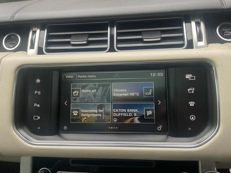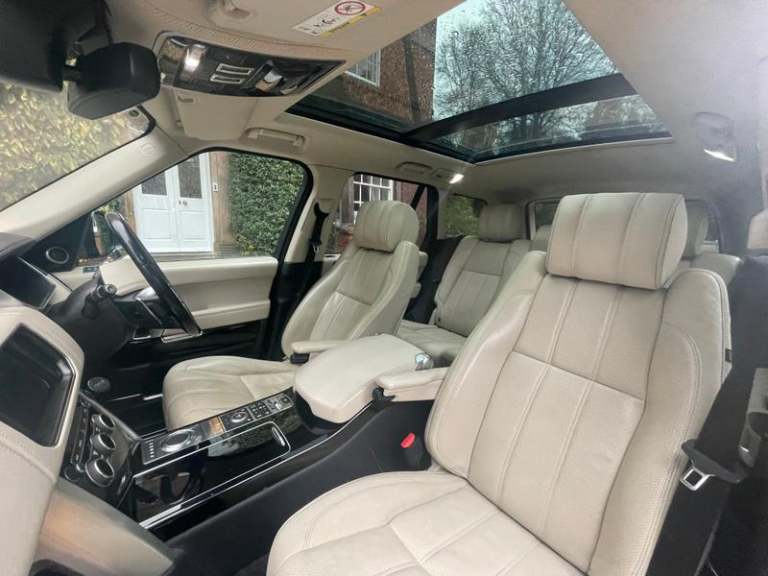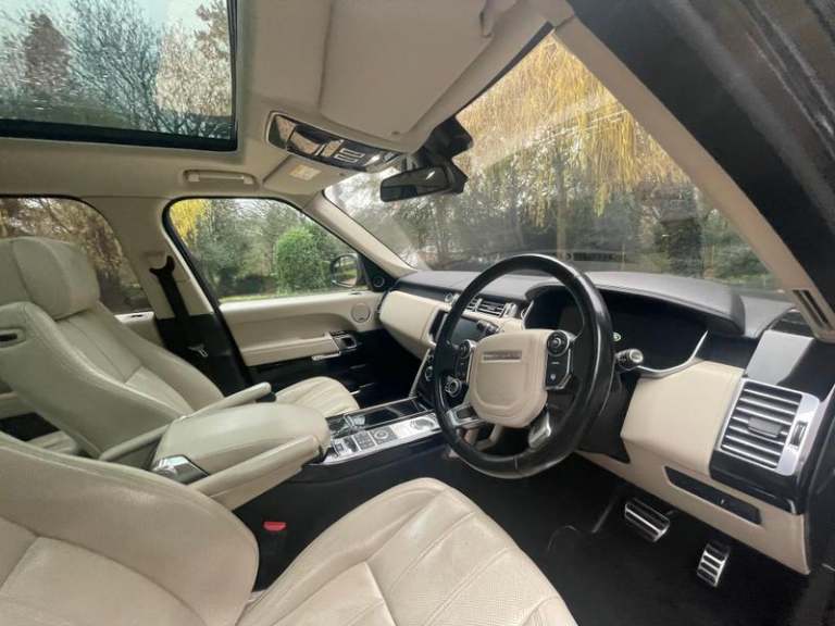 2016 RANGE ROVER 5.0 V8 Autobiography SUV 5dr Petrol Auto 4WD Euro 6 (s/s) (510 ps). FINISHED IN SANTORINI BKACK WITH CONTRASTING FULL IVORY LEATHER.FULL OF EXTRA SPEC INCLUDING HEADS UP DISPLAY, ELECTRIC DEPLOYABLE TOW BAR, 22 INCH FULL SOARE WHEEL, SOLAR ATTENUATING WINDSCREEN, SECURE TRACKER PRO, ADVANCED TOW ASSIST. BRIGHT PEDALS AND FIRST AID KIT, STANDARD SPEC FOR THIS TO TOP OF THE RANGE FOR THIS MODEL INCLUDES, HOT AND COOLED MASSAGE SEATING. PANORAMIC SUNROOF WITH ELECTRIC BLIND, REAR SCREEN ENTERTAINMENT. HDD NAVIGATION SYSTEM. HOT AND COOLED MASSAGE SEATING, REVERSE CAMERA, PARKING SENSORS, HEATED LEATHER STEERING WHEEL, DAB RADIO, BLUETOOTH TELEPHONE CONNECTIVITY, BLUETOOTH MUSIC STREAMING, AIR CIN, CLIMATE CONTROL, UPGRADED 22 INCH ALLOYS, PRIVACY GLASS, COMPLIMENTED WITH FULL DETAILED SERVICE HISTORY. 20in Brake Calipers, 22in Alloy Wheels - 7 Spoke Style 708, 8in High Resolution Dual-View Touch Screen, ABS - Anti Lock Braking System, ASL - Active Speed Limiter, ATPC - All Terrain Progress Control, Adaptive Cruise Control Incorporating Queue Assist with Emergency Braking and Active Seat Belts, Adaptive Dynamics, Adjustable - Auto Dimming - Heated - Power Fold Memory Exterior Mirrors with Approach Lamps, Auto Dimming Rear View Mirror, Autobiography Badge, Automatic Headlights with High Beam Assist, Auxiliary Power Sockets, Blind Spot Monitor and Closing Vehicle Sensing with Reverse Traffic Detection, Bluetooth Phone Connection, Body Coloured Door Handles and Front