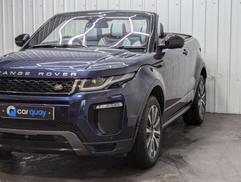 + HSE DYNAMIC LUXURY CONVERTIBLE MASSAGE SEATS HUD 1 OWNER + SOURCE – This rare and stunning Range Rover Evoque HSE Dynamic Luxury Si4 Convertible has been sourced directly from its one and only owner from new. A superb example of Land Rover's flagship luxury convertible SUV, combining unique style with premium features and powerful petrol performance. OWNERSHIP – Just one private owner from brand new, clearly cherished and maintained to an exceptional standard. SERVICE HISTORY – The car will be fully mechanically prepared by our team prior to sale and supplied with a brand new 12 month MOT for complete peace of mind. PRESENTATION – Finished in elegant and desirable Loire Blue metallic, this Evoque looks fantastic with its sleek convertible body styling. Inside, it features a truly luxurious specification including 14-way electric memory front seats with massage function, black leather upholstery, Head-Up Display, and a reversing camera. The condition throughout is genuinely stunning, reflecting careful ownership. ADDITIONAL INFORMATION – Powered by the responsive 2.0L Si4 petrol engine and paired with automatic transmission and 4WD, this Evoque offers smooth, confident driving whether cruising the city or heading out on the open road. The buyer will receive the V5 registration document, MOT certificate, and HPI clear certificate. All vehicles are supplied valeted prior to sale and with a nationwide warranty. Part exchange welcome, and finance available – contact us today for a tailor-made quotation. PLEASE NOTE – To avoid any disappointment, please call prior to arrival to ensure the vehicle you are interested in has not been reserved by another customer and is on site available for viewing. ABOUT US – We are a family-owned, multi-award-winning car dealership with up to 200 quality used vehicles in stock. With up to 100 images per car, walk-around videos, bespoke finance quotation tools and the ability to reserve vehicles too, head over to carquay.co.uk and get in touch with our team today. Take a moment to read over 1500 genuine 5-star reviews about our business and keep up to date with what’s happening on our social media