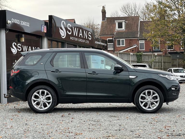 2017 Land Rover Discovery Sport 2.0 TD4 HSE Diesel Auto 5 Door SUV Green -95574 MILES. -1 FORMER KEEPER. -195 POUNDS ROAD TAX PER YEAR. -TWO KEYS. -HPI CLEAR. -EXCELLENT SERVICE HISTORY WITH 7 ENTRIES IN TOTAL. 4 OF WHICH LAND ROVER MAIN DEALER All of our retail vehicles are sold with the Swans Promise, and will go through our rigorous preparation process which includes: -A minimum of 9 months MOT at point of sale. -No-obligation 2 Year Service Plan quote provided for every customer. -A routine service carried out, if due within next 3 months or 3,000 miles at point of sale. -Thorough safety check and road test carried out by our experienced vehicle technicians. Our on-site workshop takes pride in professionally preparing your new car to a satisfactory standard. -3 Months Warranty (Upgrades available, please ask for details). -Full HPI Report - all of our cars are HPI checked. -Drive away insurance available, please ask for details -We do not charge any admin fees* **PART EXCHANGE AVAILABLE** **PARTNERS WITH CLOSE BROTHER MOTOR FINANCE** **COMPETITIVE FINANCE OPTIONS AVAILABLE FOR ALL CREDIT PROFILES, APPLY BELOW AND GET ACCEPTED TODAY! ** **BROKERS CHARGE FEES, WE DO NOT! TALK TO US FOR A NO-OBLIGATION QUOTE TO ENSURE YOU GET THE LOWEST MONTHLY PAYMENT POSSIBLE** **EVERY CAR RECEIVES A PROFESSIONAL VALET UPON ARRIVAL AND REFRESH PRIOR TO COLLECTION** **ASK ABOUT OUR UPGRADED VALETING OPTIONS** Swans Motor Group are proud to be a highly reputable, family run used vehicle dealership in the Norwich area. Having originally established our business in 2012, we have a friendly team who all benefit from previous main-dealer experience cited to assist you along the journey of purchasing your next vehicle. We have over 60 combined years of experience in various sectors of the motor industry, so you can rest assured that you are in safe hands with Swans. Customer satisfaction is our number one priority; therefore, we offer a stress-free, personable buying experience. We look forward to welcoming you to our business soon! We are located close to Norwich City Centre, at 231-245 Heigham Street, Norwich, NR2 4LN. DISCLAIMER Although we make every effort to ensure our advertised vehicle specifications are correct, due to being computer-generated, there can sometimes be errors. Please call us to verify any vehicle specifications if you are unsure or require clarification. Admin fees may apply when using out-of-house finance companiesbrokers Please contact us for details. We do not charge any admin fees for using our in-house finance options.