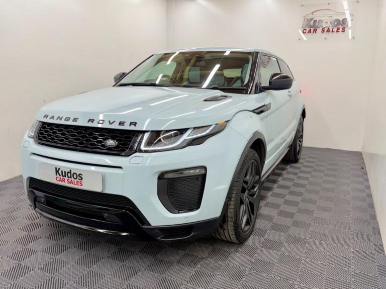 2017 LAND ROVER RANGE ROVER EVOQUE 2.0 TD4 HSE DYNAMIC 3dr Automatic **PHOTOS DON'T DO THIS CAR JUSTICE** HEAD TURNING CAR, FINISHED IN RARE BALTORO ICE BLUE. NO DEPOSIT FINANCE AVAILABLE. FROM ONLY £254 per mth. 6 MONTH WARRANTY INCLUDED. EACH VEHICLE COMES WITH A FREE HPI CLEAR REPORT AND AA BREAKDOWN COVER. 76000 MILES. FULL SERVICE HISTORY AND RECENTLY SERVICE. MOT UNTIL 02/07/26. SUCH A STUNNING CAR AND REALLY LOVELY TO DRIVE. **HUGE LUXURY SPEC** STUNNING BLACK AND ICE BLUE LEATHER INTERIOR, 3 SETTING MEMORY ELECTRIC FRONT SEATS, HEATED FRONT SEATS, BLACK PACK, TOUCH SCREEN SAT NAV, REAR PARKING CAMERA, FULL PANORAMIC GLASS ROOF WITH ELEC BLIND, FRONT AND REAR PARKING SENSORS, CRUISE CONTROL, KEYLESS ENTRY, KEYLESS PUSH BUTTON START, ADJUSTABLE DRIVING MODES, TOUCH SCREEN DISPLAY, MERIDIAN SOUND SYSTEM, INDIVIDUAL CLIMATE CONTROL, XENON LIGHTS, LED DAYTIME LIGHTS, AIRCON, BLUETOOTH, DAB RADIO, POWER FOLDING MIRRORS, ELEC WINDOWS AND MIRRORS. UNMARKED 19'' ALLOY WHEELS. FINANCE PACKAGES - With a number of lenders on board i am able to offer Finance to suit individual circumstances, including Sub Prime. All CARS ARE HPI CHECKED AND CLEAR. WARRANTY - At KUDOS CAR SALES every vehicle comes with a FREE 6 MONTH Warranty. Any repairs under warranty can be carried out at your local garage -Extended warranty available on request at extra cost. PREVIOUS NON SMOKER. 2 KEYS. ***ALL PART EXCHANGE'S CONSIDERED***