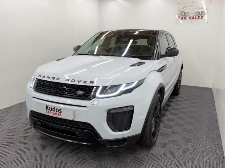 2017 LAND ROVER RANGE ROVER EVOQUE 2.0 TD4 HSE DYNAMIC 5dr Automatic - **OVER £4500 OF FACTORY FITTED EXTRAS**HEAD TURNING CAR, FINISHED IN STUNNING YULONG WHITE PEARL AND PIANO BLACK. NO DEPOSIT FINANCE AVAILABLE. FROM ONLY £239 per mth. 6 MONTH WARRANTY INCLUDED. EACH VEHICLE COMES WITH A FREE HPI CLEAR REPORT AND AA BREAKDOWN COVER. 87000 MILES. FULL SERVICE HISTORY AND RECENTLY SERVICE. MOT UNTIL 08/10/26. SUCH A STUNNING CAR AND REALLY LOVELY TO DRIVE. **HUGE LUXURY SPEC** FULL BLACK LEATHER INTERIOR, 3 SETTING MEMORY ELECTRIC FRONT SEATS, HEATED FRONT SEATS, BLACK PACK, TOUCH SCREEN SAT NAV, REAR PARKING CAMERA, FULL PANORAMIC GLASS ROOF WITH ELEC BLIND, FRONT AND REAR PARKING SENSORS, CRUISE CONTROL, KEYLESS ENTRY, KEYLESS PUSH BUTTON START, ELECTRIC POWER OPEN BOOT, ADJUSTABLE DRIVING MODES, TOUCH SCREEN DISPLAY, MERIDIAN SOUND SYSTEM, INDIVIDUAL CLIMATE CONTROL, XENON LIGHTS, LED DAYTIME LIGHTS, AIRCON, BLUETOOTH, DAB RADIO, POWER FOLDING MIRRORS, ELEC WINDOWS AND MIRRORS. UNMARKED 19'' ALLOY WHEELS. FINANCE PACKAGES - With a number of lenders on board i am able to offer Finance to suit individual circumstances, including Sub Prime. All CARS ARE HPI CHECKED AND CLEAR. WARRANTY - At KUDOS CAR SALES every vehicle comes with a FREE 6 MONTH Warranty. Any repairs under warranty can be carried out at your local garage -Extended warranty available on request at extra cost. PREVIOUS NON SMOKER. 2 KEYS. ***ALL PART EXCHANGE'S CONSIDERED***