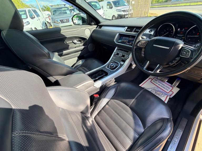 3 doors, 5 seats, 53,000 miles, Automatic, diesel, silver, FULLY HPI CLEAR, HIGH SPEC, FACELIFT MODEL, PANORAMIC GLAS SUNROOF,20 INCH ALLOYS,PREMIUM LED HEADLIGHTS, PRIVACY GLASS, SAT NAV, 20 INCH ALLOYS, ABS, Air conditioning, Anti-theft protection, Brake assist system, Central door locking, Chrome/bright trim, Connection to ext.entertainment devices, Cruise control, Cup holders, Electric windows, Electronic brake distribution, Electronic traction control, Front airbag, Front fog lights, Front seat centre armrest, Isofix preparation, Power steering, Remote audio controls, Remote boot/hatch/rear door release, Side airbag, Stability control, Service history. COMPETETIVE FINANCE PACKAGES AVAILABLE, We offer a fully comprehensive drive away insurance cover on request. We offer up to 3 years warranty per vehicle! WE ACCEPT ALL MAJOR DEBIT AND CREDIT CARDS! ALWAYS AROUND 100 VEHICLES IN STOCK!. 10.2in High Resolution Touch Screen,12-12 Way - Electric Memory Seats,12V Auxiliary Power Sockets - Front and Luggage Compartment,20in Alloy Wheels - 5 Split Spoke Style 504 - Sparkle Silver Finish,5in TFT Driver Information Centre,ABS - Anti Lock Braking System,ATPC - All Terrain Progress Control,Airbags - Driver Knee,Airbags - Front - Driver and Front Passenger,Airbags - Side Curtain - Driver and Front Passenger and Row Two,Auto-Dimming Interior Mirror,Auxiliary Power Socket - Front and Luggage Compartment,Bluetooth Telephone Connectivity with Streamed Audio,Body Coloured Door Handles,Body Coloured Roof with Matching Spoiler,Body-coloured Door Claddings,Bright Pedals,CD-DVD Player,Cabin Air Quality Sensor,Carpet Mats with Edging,Centre console - Covered Storage Compartment,Climate Control - Automatic with Air Filtration and Automatic Recirculation,Climate Control - Rear Vents,Customer Configurable Interior Mood Lighting,DAB - Digital Audio Broadcast,DSC - Dynamic Stability Control,Door Mirrors - Narvik Black,Dynamic Body Style,Dynamic Front and Rear Bumper,EBA - Emergency Brake Assist,EBD - Electronic Brake-Force Distribution,EDC - Engine Drag Torque Control,EPAS - Electronic Power Assisted Steering,Electric Parking Brake,Engine Badge - HSE,Evoque Badge in Red,Exhaust Finishers - Bright Square,Exterior Mirrors - Electric Adjustment-Heated-Power Fold-Puddle Lamps with Projected Evoque Graphic-Direction Indicators-Memory Function with Auto Dipping in Reverse Gear,Front Fog Lights,Front Height-adjustable Seat Belts,Front and Rear Parking Aid,Global Opening for all Windows,Grille Surround - Corris Grey,HDC - Hill Descent Control,HSA - Hill Start Assist,Hazard Warning Lights Under Heavy Braking,Headlight Power Wash,Headlights - Automatic High Beam Assist,Headlights - Xenon with Automatic Levelling and LED Signature Lights,Heated Front Seats,Heated Rear Screen,ISOFIX Mounting Points in Outboard Rear Seats,Illuminated Range Rover Treadplates,Illumination - White Ambient Lighting,Illumination - White Lighting,Illumination for Footwell-Glovebox-Load Compartment Lamp x1,InControl Protect,InControl Touch Pro - Level 2,InControl Touch Pro Navigation,Lane Departure Warning with Autonomous Emergency Braking,Locking Wheel Nuts,Luggage Compartment - Anchor Points,Luggage Cover,Manual Tailgate,Manually Adjustable Steering Column - Four-Way,Narvik Black Bonnet Louvres,Narvik Black Fender Blade,Narvik Black Grille,Narvik Black Inner and Indus Silver Outer Front and Rear Tow Eye Finishers,Paddle Shift and Sport Mode,Parking Aid - Front,Perforated Oxford Leather Steering Wheel with Audio Controls and Cruise Control,Proximity Sensing and Touch Detection For Overhead Map Lights,Push Button Start,RSC - Roll Stability Control,Rain Sensing Windscreen Wipers and Automatic Headlights - Automatic,Range Rover Smart Key Controls - Remote lock-Unlock-Double Lock-Lights on Tailgate Open,Rear Centre Armrest,Rear View Camera,Satin Brushed Aluminium Centre Console Finisher,Seat Belt Reminder,Seats - Rear Centre Head Restraint,Side Sills - Anthracite,Sun Visors - Illuminated Vanity Mirrors,TCS - Traction Control System,TPMS - Tyre Pressure Monitoring System,TSA - Trailer Stability Assist,Tailgate Finisher in Narvik Black,Terrain Response,Three Seat Bench - 60-40 Split,Torque Vectoring,Trim Finisher - Textured Aluminium,Tyre Repair System,USB Connectivity,Volumetric Alarm,Windscreen - Heated,Windscreen Washer Jets - Heated