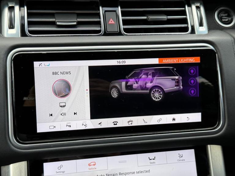 2 FORMER KEEPERSFULL SERVICE HISTORYSERVICE INTERVALS @15K/20K/25K/37K/63KTHIS VEHICLE COMES WITH 360 CAMERAS WITH CORNER VIEW, ELECTRIC HEATED AND COOLED MASSAGED MEMORY SEATS, LED ADAPTIVE XENON LIGHTS, HEATED MULTIFUNCTIONAL STEERING WHEEL WITH LANE ASSIST,CRUISE CONTROL, SPEED LIMITER, DIGITAL DASH WITH HEAD UPS DISPLAY, MERIDIAN SOUND SYSTEM, REAR ELECTRIC SEATS WITH CHAUFFEUR MODE, AMBIENT LIGHTING, WIRELESS APPLE CARPLAY/DAB/FM/BLUETOOTH AUDIO/SD/USB/SIM/TV, HEATED WINDSCREEN, PANORAMIC SUNROOF, PRIVACY GLASS, FRIDGE IN ARM REST, Key FeaturesPanoramic Sunroof LED Pixel Plus Headlights & Dark Rear LampsEbony Semi-Aniline Leather Interior with Grand Black Veneer Trim24-Way Heated/Cooled/Massage Front Seats & Executive Rear Seating4-Zone Climate Control with Fuel Fired HeaterHead-Up Display & Configurable Ambient LightingMeridian Surround Sound System (1280W)Navigation, Digital TV Receiver, DVD Player & 3G WiFiHeated Windscreen & Heated Steering WheelRefrigerator/Cooler Box & Premium Leather ConsoleHands-Free Powered Tailgate & Soft-Close Doors360° Surround Camera System with Park AssistBlind Spot Assist, Reverse Traffic Detection & Lane Keep AssistAdaptive Cruise Control with Queue AssistTerrain Response, ACE Suspension & Electronic Locking Differential