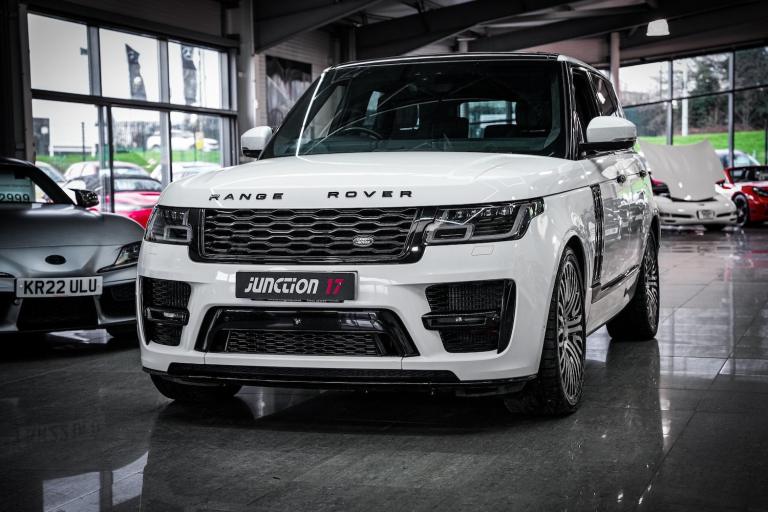 *CLICK - BUY - COLLECT* FINANCE AVAILABLE! HPI CLEAR! Junction 17 Cars now have to offer a stunning Land Rover Range Rover 4.4 SD V8 Autobiography Auto 4WD 5dr.. Service history present.. Finished in Fuji White with Black leather upholstery.. Desirable specification with upgraded 23'' Overfinch style diamond-cut alloy wheels.. Heated/cooled front and rear seats (x4).. Heated steering wheel.. Radar assisted cruise control/speed limiter.. Lane departure assist with blind spot monitoring.. Rear seat comfort package with rear electric adjust & memory.. Privacy glass.. Satellite navigation and more.*WE WILL BEAT ANY CAR VALUATION SITE FOR YOUR PART EXCHANGE* Junction 17 Cars (Runner Up at the Motor Trader Independent Dealer Awards 2019 nominated for Car Supermarket of the Year Award) is a unique family run business with over 7 millions worth of stock currently split over our purpose-built showroom in Yaxley, Peterborough and our new showrooms in Grantham and Rugby. Our vehicles can also be reserved with a 99 refundable holding deposit to ensure that they are professionally prepared/valeted for your viewing pleasure. Competitive HP and PCP packages are available with decision/approval available within 15 minutes. We also offer comprehensive warranties over a variety of different terms as well as Williams Ceramic Coating, Flexfuel Engine Carbon Cleaning and more. **NATIONWIDE DELIVERY AVAILABLE** Payment : maximum 500 card payment balance by bank transfer