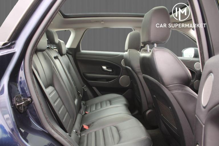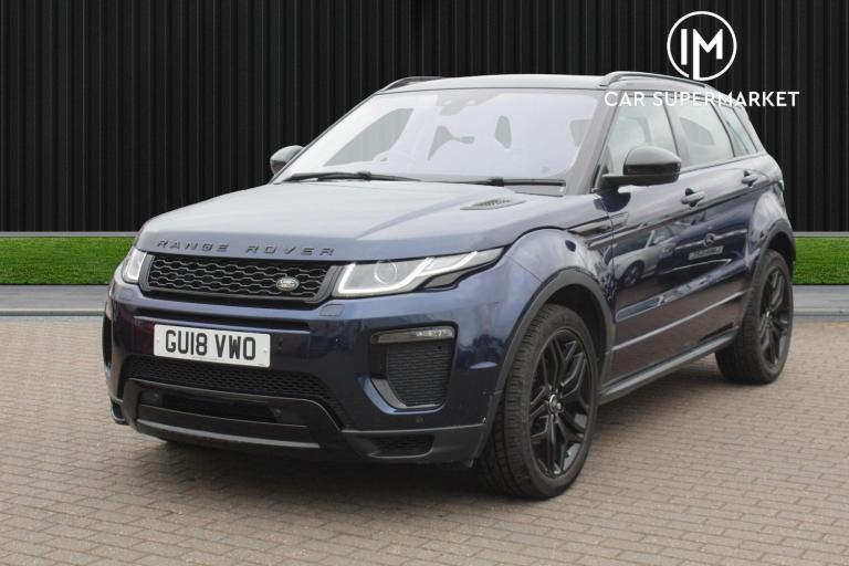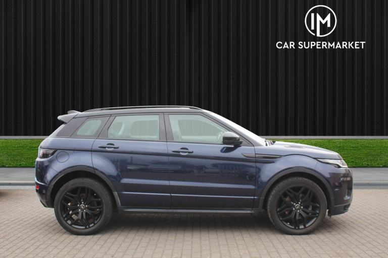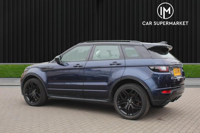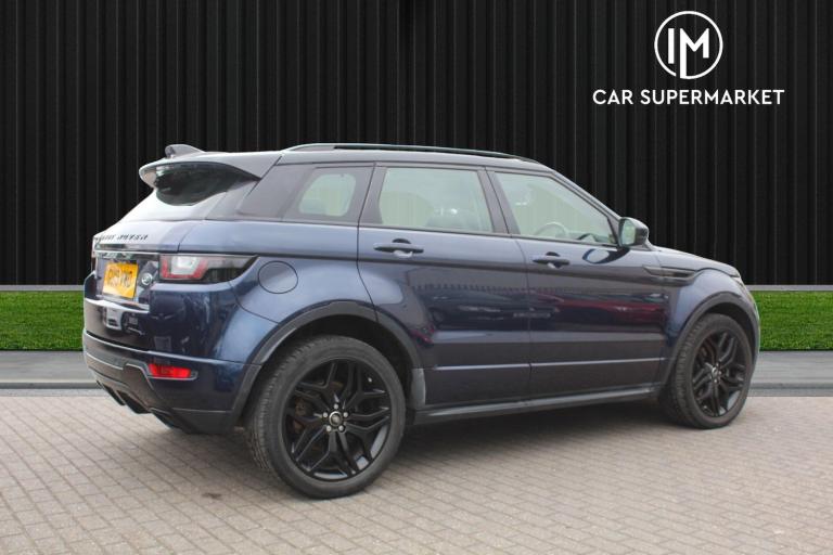 IM Car Supermarket is pleased to offer a Land Rover Range Rover Evoque 2.0 Si4 HSE Dynamic Auto 4WD Euro 6 (s/s) 5dr in Blue with only 63529 miles on the clock, ULEZ Compliant, NO ULEZ Charges applies to this Vehicle, 3 Months Warranty, Service History, Number of services 5 (5 main dealer), MOT Expiry 28 May 2026.A High Specification includes Panoramic Roof, Navigation System, Navigation HDD, Parking Sensor(s), Climate Control, Leather Trim, Tyre Repair Kit, 20'' Alloy Wheels, Privacy Glass, Phone & Media BT-Connections...