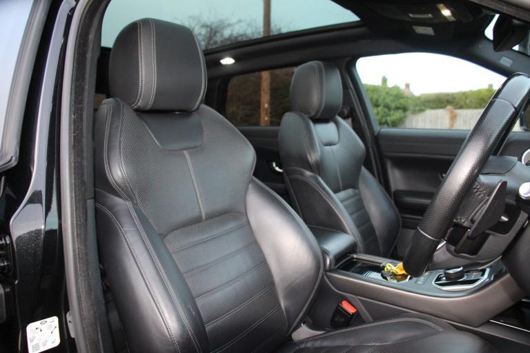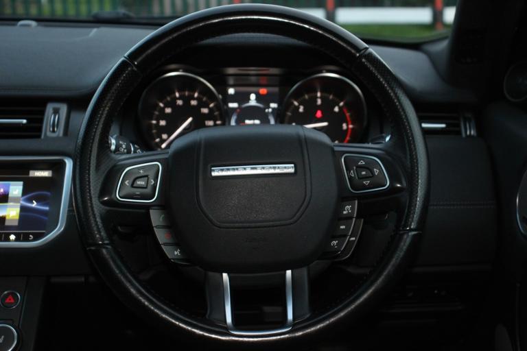 This 2018 Land Rover Range Rover Evoque TD4 HSE Dynamic boasts a clear vehicle history, Timing chain replaced on 31/10/2024 at 49996 Miles offering you peace of mind. This stylish SUV features a powerful 2.0L Diesel Engine paired with a Four Wheel Drive system, ensuring capability in various conditions. The HSE Dynamic trim level provides a premium experience, complemented by a Euro 6 emission class. Notable features include a Fixed Panoramic Roof with a powered blind, allowing you to enjoy an open and airy cabin. For effortless manoeuvring, it comes equipped with a Rear Camera Parking Aid and Front and Rear Parking Aid sensors. The Xenon headlights with LED signature lights provide excellent visibility, while the automatic climate control with air filtration ensures a comfortable interior environment.Experience impressive performance with an acceleration of 0-60mph in just 8.6 seconds, demonstrating its dynamic capabilities. This Range Rover Evoque also offers a generous boot space, making it practical for all your needs. Furthermore, its low CO2 emissions highlight its efficiency, making it a more environmentally conscious choice compared to many other vehicles in its class.