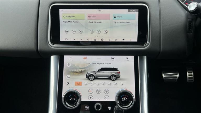 A fantastic SUV packed with luxurious features complimented by a comfortable ride, and a great specification. Our Range Rover Sport Autobiography Dynamic is finished in Santorini Black matched with 22-inch Style 5004 wheels, over Ebony split Semi-aniline leather interior, and comes equipped with some brilliant features and optional extras, including, 22-way Heated and Cooled front seats with Memory function, Heated rear seats, Three-zone Climate Control, Meridian Surround Sound System, Sliding Panoramic roof, Matrix LED Headlights, Keyless Entry, Adaptive Cruise Control, Lane Keep Assist, Blind Spot Monitor, Front and Rear Parking Aids, 360-degree Surround Camera, Apple CarPlay and Android Auto, DAB Radio, Digital TV, Front Centre Console Cooler Compartment, and much more. Call today for more information.