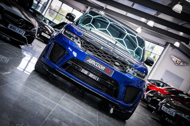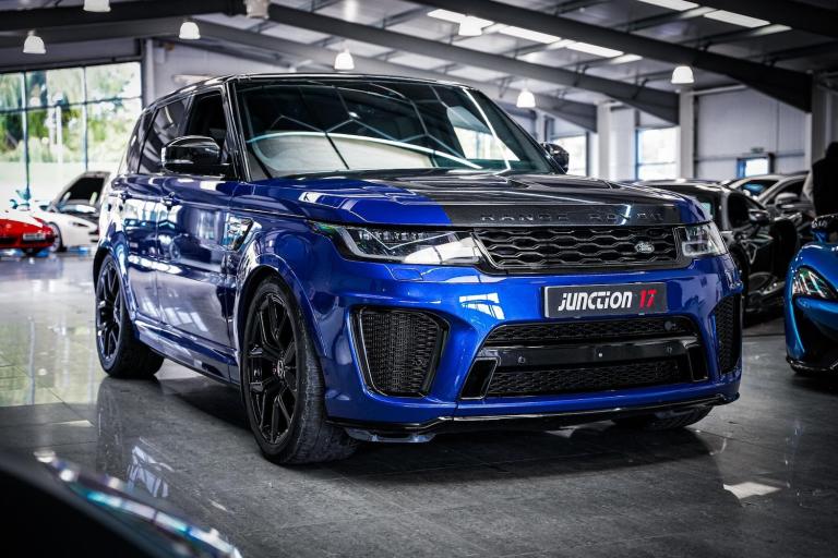 *CLICK - BUY - COLLECT* FINANCE AVAILABLE! HPI CLEAR! Junction 17 Cars now have to offer a stunning Land Rover Range Rover Sport 5.0 P575 V8 SVR Auto 4WD Euro 6 (s/s) 5dr.. 6 x Main Dealer Service Records.. Finished in Estoril Blue.. Huge Specification.. Head Up Display.. Meridian Sound System.. 360 Degree Surround Camera System with Park Assist.. Sliding Panoramic Roof.. 22'' Alloys.. Blind Spot Monitoring.. Adaptive Cruise Control.. Deployable Sidesteps.. Apple CarPlay.. Four Zone Climate Control.. and much more.*ANY THIRD PARTY VEHICLE INSPECTIONS ARE WELCOME* *WE WILL BEAT ANY CAR VALUATION SITE FOR YOUR PART EXCHANGE* Junction 17 Cars (Runner Up at the Motor Trader Independent Dealer Awards 2019 nominated for Car Supermarket of the Year Award) is a unique family run business with over 7 millions worth of stock currently split over our purpose-built showroom in Yaxley, Peterborough and our new showrooms in Grantham and Rugby. Our vehicles can also be reserved with a 99 refundable holding deposit to ensure that they are professionally prepared/valeted for your viewing pleasure. Competitive HP and PCP packages are available with decision/approval available within 15 minutes. We also offer comprehensive warranties over a variety of different terms as well as Williams Ceramic Coating, Flexfuel Engine Carbon Cleaning and more. **NATIONWIDE DELIVERY AVAILABLE** Payment : maximum 500 card payment balance by bank transfer