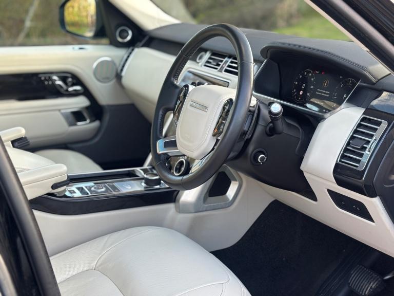 Here at Landmark Cars we car pleased to offer this beautiful 2019 19 Range Rover Vogue SE 3.0 SDV6 Full Service History, Only 1 Owner from New, This Vehicle Is ULEZ Compliant, Fully HPI Clear, Comes With 2 Keys + All Documentation/Booklets Ready To Hand.Specification Includes, 3.0 SDV6 Twin Turbo Diesel Engine, 8 Speed Automatic Gearbox With Paddle Shift, High Specification Vogue SE Model, Stunning Factory Metallic Santorini Black With Land Rover Ivory Leather Interior With Piano Black Burr Wood Trim, Fully Electric Operating Rear Seats, Virtual Dashboard, 22"""" Range Rover Alloy Wheels, Apple Car Play, Factory Fitted Touch Dual Screen Sat Nav, Rear Surround View Camera, Fixed Glass Panoramic Roof, Adaptive Bi-Xenon Headlights With Signature LED Daytime Running Lights & High Beam Assistance, Upgraded Meridian Surround Sound System, Multi-Colour Ambient Interior Lighting, Heated & Cooled Seats, Heated Steering Wheel, Blind Spot Assistance, Soft Closing Doors, Electric Memory Seats, Adaptive Cruise Control, Keyless Go, Privacy Windows, Electric Folding Mirrors, Auto Terrain Response, Dual Zone Climate Control With Air Con, Alarm + Much More!A real stunning 1 Owner Example in one of the best combinations.Recently Serviced and MOT'dHPI Clear - Finance can be arranged to enquire.For any further information please do email or call - 07775 927100Many Thanks