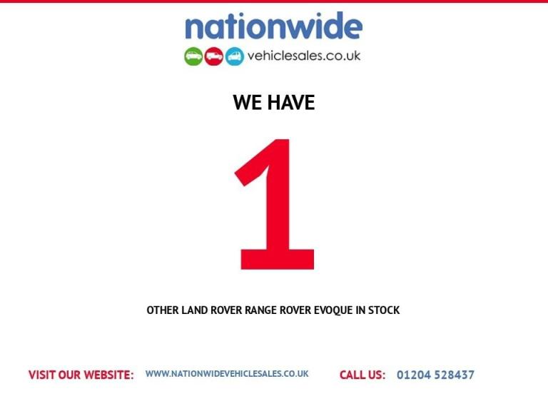 Nationwide Vehicle Sales are an established family run dealership based in Bolton. We have over 100 cars currently in stock and offer fantastic finance rates on both HP and PCP finance, we have extended warranties available for up to 3 years on all of our vehicles giving you complete peace of mind. Give us a call today to reserve your new car with a refundable £100 deposit..10in Touch Pro, 17in Alloy Wheels - 5 Split Spoke - Style 5073 - Satin Dark Grey, 40-20-40 Split Fold Rear Seat, 8-Way Heated Manual Front Seats, ABS - Anti Lock Braking System, Airbags - Driver Knee, Airbags - Front - Driver and Front Passenger, All Season Tyres, Ambient Interior Lighting, Analogue Dials with Central TFT Display, Android Auto, Apple CarPlay, Automatic Headlights, Autonomous Emergency Braking, Bluetooth Connectivity, Body Coloured Roof, Brake Pad Wear Indicator, Bright Metal Pedals, Carpet Mats, Chrome Treadplates, Cruise Control and Speed Limiter, Customer Configurable Autolock, D150 Badge, DAB - Digital Audio Broadcast, DSC - Dynamic Stability Control, Driver Condition Monitor, EBA - Emergency Brake Assist, EBD - Electronic Brake-Force Distribution, EPAS - Electronic Power Assisted Steering, ETC - Electronic Traction Control, Electric Parking Brake, Electric Windows with One-Touch Open-Close and Anti-Trap, Evoque and R-Dynamic Badge, Flush Deployable Door Handles, Front and Rear Parking Aid, Headlining - Ebony Morzine, Heated Door Mirrors, Heated Rear Window with Timer, Hill Launch Assist, InControl - Remote App, InControl Apps, Interior Rear View Mirror - Manual Dipping, Intrusion Sensor, LED Headlights, Lane Keep Assist, Leather Steering Wheel, Locking Wheel Nuts, Manual Headlight Levelling, Manual Tailgate, Manually Adjustable Steering Column, Overhead Lighting Console, Overhead Stowage for Sunglasses, Passive Front Headrests, Passive Suspension, Power Operated Child Locks, Power Socket Pack 1, Push Button Start, R-Dynamic Exterior Pack, RSC - Roll Stability Control, Rain Sensing Windscreen Wipers, Rear Air Vents, Rear Fog Lights, Rear ISOFIX, Rear View Camera, Seat Belt Reminder, Seats - Rear Centre Head Restraint, Side Curtain Airbags and Thorax, Sound System, Standard Roof, Sun Visors - Illuminated Vanity Mirrors, TPMS - Tyre Pressure Monitoring System, Tailgate Spoiler, Trim Finish - Gradated Linear Dark Aluminium, Twin Front Cupholders with Cover, Twin Sliding Front Centre Armrest, Two-Zone Climate Control, Tyre Repair System, Voice Control, Windscreen - Heated, Windscreen Washer Jets - Heated