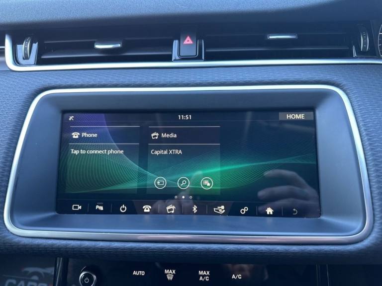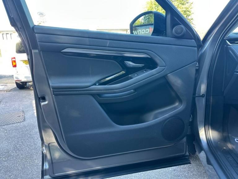 .Privacy Glass, Black Exterior Pack, Black Contrast Roof, 20in Alloy Wheels - 5 Split-Spoke - Style 5079 - Gloss Black, 10in Touch Pro, 17in Alloy Wheels - 10 Spoke - Style 1005 - Satin Dark Grey, 40-20-40 Split Fold Rear Seat, 8-Way Heated Manual Front Seats, ABS - Anti Lock Braking System, Airbags - Driver Knee, Airbags - Front - Driver and Front Passenger, All Season Tyres, Ambient Interior Lighting, Analogue Dials with Central TFT Display, Automatic Headlights, Autonomous Emergency Braking, Bluetooth Connectivity, Body Coloured Roof, Brake Pad Wear Indicator, Carpet Mats, Cruise Control and Speed Limiter, Customer Configurable Autolock, D150 Badge, DAB - Digital Audio Broadcast, DSC - Dynamic Stability Control, Driver Condition Monitor, EBA - Emergency Brake Assist, EBD - Electronic Brake-Force Distribution, EPAS - Electronic Power Assisted Steering, ETC - Electronic Traction Control, Electric Parking Brake, Electric Windows with One-Touch Open-Close and Anti-Trap, Evoque Badge, Flush Deployable Door Handles, Front and Rear Parking Aid, Headlining - Light Oyster Morzine, Heated Door Mirrors, Heated Rear Window with Timer, Hill Launch Assist, InControl - Remote App, Interior Rear View Mirror - Manual Dipping, Intrusion Sensor, LED Headlights, Lane Keep Assist, Leather Steering Wheel, Locking Wheel Nuts, Manual Headlight Levelling, Manual Tailgate, Manually Adjustable Steering Column, Overhead Lighting Console, Overhead Stowage for Sunglasses, Passive Front Headrests, Passive Suspension, Power Operated Child Locks, Power Socket Pack 1, Push Button Start, RSC - Roll Stability Control, Rain Sensing Windscreen Wipers, Rear Air Vents, Rear Fog Lights, Rear ISOFIX, Rear View Camera, Seat Belt Reminder, Seats - Rear Centre Head Restraint, Shadow Atlas - RANGE ROVER - Bonnet and Tailgate Script, Side Curtain Airbags and Thorax, Sound System, Standard Roof, Standard Treadplates, Sun Visors - Illuminated Vanity Mirrors, TPMS - Tyre Pressure Monitoring System, Tailgate Spoiler, Trim Finish - Gradated Linear Bright Aluminium, Twin Front Cupholders with Cover, Twin Sliding Front Centre Armrest, Two-Zone Climate Control, Tyre Repair System, Voice Control, Windscreen - Heated, Windscreen Washer Jets - Heated