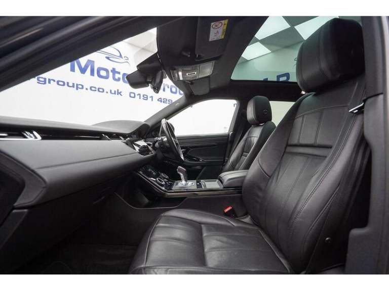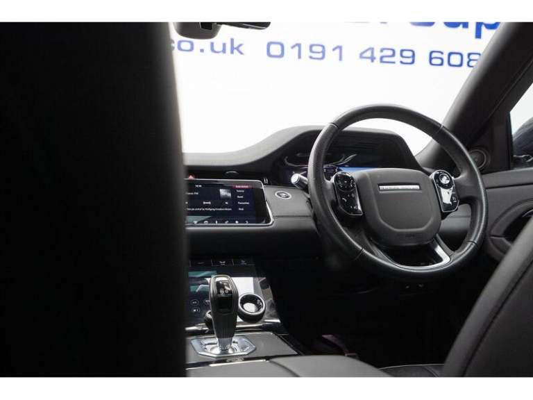 Power Socket Pack 2,Matrix LED Headlights with Signature DRL,21in Alloy Wheels - 5 Split-Spoke - Style 5078 - Gloss Black,Reduced Section Spare Wheel,Premium Carpet Mats,Premium Textile Pack,Air Quality Sensor, 14-way - Heated Electric Memory Front Seats, 20in Alloy Wheels - 5 Split-Spoke - Style 5079 - Gloss Sparkle Silver, 360 Degree Parking Aid, 40-20-40 Split Fold Rear Seat, ABS - Anti Lock Braking System, Airbags - Driver Knee, Airbags - Front - Driver and Front Passenger, All Season Tyres, Android Auto, Apple CarPlay, ATPC - All Terrain Progress Control, Auto-Dimming Interior Rear View Mirror, Auto-Dimming Power Fold - Heated Door Mirrors with Memory and Approach Lights, Automatic Headlight Levelling, Autonomous Emergency Braking, Black Gearshift Paddles, Bluetooth Connectivity, Body Coloured Roof, Brake Pad Wear Indicator, Bright Metal Pedals, Carpet Mats, Chrome Treadplates, Clear Exit Monitor, Climate Control - Rear Vents, Cruise Control and Speed Limiter, Customer Configurable Autolock, D180 Badge, DAB - Digital Audio Broadcast, Driver Condition Monitor, DSC - Dynamic Stability Control, EBA - Emergency Brake Assist, EBD - Electronic Brake-Force Distribution, Efficient Driveline, Electric Parking Brake, Electric Windows with One-Touch Open-Close and Anti-Trap, EPAS - Electronic Power Assisted Steering, ETC - Electronic Traction Control, Evoque and R-Dynamic Badge, Flush Deployable Door Handles, HDC - Hill Descent Control, Headlights - Automatic High Beam Assist, Headlining - Ebony Morzine, Heated Rear Window with Timer, Hill Launch Assist, InControl - Remote App, InControl Apps, Interactive Driver Display, Interior Lighting, Intrusion Sensor, Lane Keep Assist, Locking Wheel Nuts, Low Traction Launch, Manually Adjustable Steering Column, Navigation Pro, Overhead Lighting Console, Overhead Stowage for Sunglasses, Park Assist, Passive Front Headrests, Passive Suspension, Perforated Leather Steering Wheel, Power Operated Child Locks, Power Socket Pack 1, Powered Tailgate, Premium LED Headlights with Signature DRL, Pro Services and Wi-Fi Hotspot, Push Button Start, Rain Sensing Windscreen Wipers and Automatic Headlights - Automatic, R-Dynamic Exterior Pack, Rear Fog Lights, Rear ISOFIX, Rear Traffic Monitor, Rear View Camera, RSC - Roll Stability Control, SE Badge, Seat Belt Reminder, Seats - Rear Centre Head Restraint, Shadow Atlas - RANGE ROVER - Bonnet and Tailgate Script, Side Curtain Airbags and Thorax, Smart Settings, Sound System, Sun Visors - Illuminated Vanity Mirrors, Tailgate Spoiler, Terrain Response 2, Torque Vectoring, Touch Pro Duo, TPMS - Tyre Pressure Monitoring System, Traffic Sign Recognition and Adaptive Speed Limiter, Trim Finish - Gradated Linear Dark Aluminium, Twin Front Cupholders with Cover, Twin Sliding Front Centre Armrest, Two-Zone Climate Control, Tyre Repair System, Voice Control, Windscreen - Heated, Windscreen Washer Jets - Heated.This 2019 Land Rover Range Rover Evoque D180 R Dynamic SE presents a superb ownership proposition, having been meticulously maintained by its single owner. This Euro 6 compliant, four wheel drive model boasts a 2.0 litre diesel engine and comes with a clear vehicle history check, offering peace of mind. Its R Dynamic SE trim is enhanced by striking 21 inch gloss black alloy wheels in a 5 split spoke style 5078, and sophisticated Matrix LED headlights with signature Daytime Running Lights. Inside, you'll find premium carpet mats, an air quality sensor for a more pleasant cabin environment, and the convenient Power Socket Pack 2.Experience the responsive performance of this Evoque, which achieves 0 to 60 miles per hour in just 8.8 seconds. This acceleration figure demonstrates its capability and suggests a more dynamic driving experience compared to other vehicles in its class. The combination of its advanced Euro 6 diesel engine and four wheel drive system ensures both efficiency and surefootedness across various road conditions, making it a well rounded and capable premium compact SUV.Please call our experienced sales team on 0191 4296086 for any additional specification queries, an in depth appraisal/ Video call or maybe we can help fund your new car. All our vehicles are prepared to the highest standards by our expert technicians in our fully equipped preparation centre as we're an AA approved dealer. Every car must go through a strict and thorough inspection, Items that require attention, mechanically or cosmetically are addressed prior to delivery. We offer a wide range of Finance and Warranty packages as well as fantastic trade rates for allow wheel refurbs/colour changes, window tinting and much more. All our vehicles are subject to a £199 service support fee and are therefore supplied with pre delivery service, 12 months MOT, 12 months AA breakdown cover and 6 months Auto Protect warranty that can be extended up to 24 month. All vehicles are HPI clear a full report can be supplied at point of sale. Home Delivery can be arranged