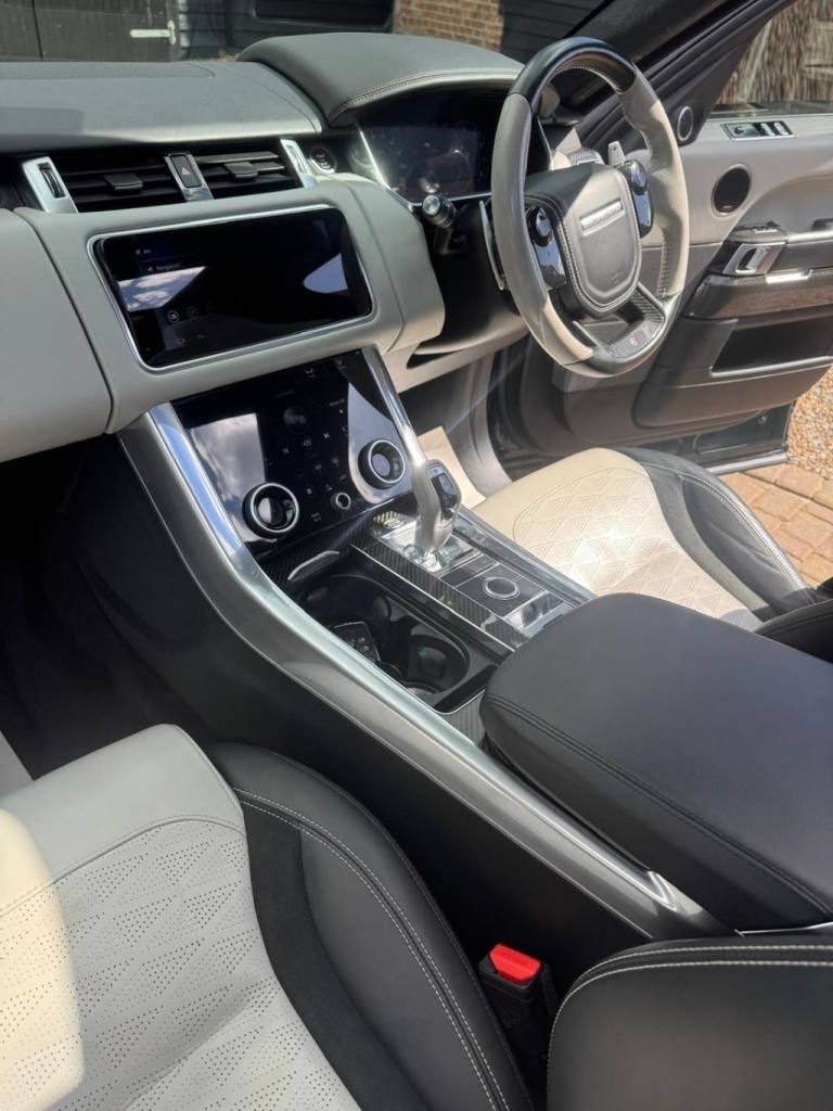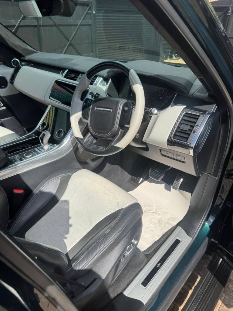 2019 LAND ROVER RANGE ROVER SPORT 5.0 P575 V8 Carbon Edition SVR SUV 5dr Petrol Auto 4WD Euro 6 (s/s) (575 ps) 45000 Miles With FSH Massive Specification Full leather interior Electric seats Heated seats / Cooled seats Air-con climate control Sat-Nav Reverse camera Alloy Wheels Tinted Windows Air-con climate control Cruise control Panoramic Roof Alloy Wheels Electric Panoramic Roof Stunning Car Px Welcome Finance Available Please call anytime [Phone number removed] - [Phone number removed] Open 7 days a week .12V Power Socket, 21in Alloy Wheels - 5 Split Spoke Style 5091 with Satin Polish Finish, 360 Degree Parking Aid, 60-40 Folding Rear Seats, ABS - Anti Lock Braking System, ATPC - All Terrain Progress Control, Active Exhaust Control, Adaptive Cruise Control with Stop and Go, Adaptive Dynamics, All Terrain lnfo Centre, Aluminium Gearshift Paddles, Android Auto, Apple CarPlay, Auto-Dimming Interior Mirror, Auto-Dimming Power Fold - Heated Door Mirrors with Memory and Approach Lights, Automatic Headlights, Blind Spot Monitor, Bluetooth Connectivity, Body Coloured Carbon Fibre Bonnet, Body Coloured Side Sills and Bumper Corners, Brake Pre-fill, Bright Metal Pedals, CBC - Cornering Brake Control, Centre Console with Armrest, Clear Exit Monitor, Configurable Dynamics, Configurable Interior Mood Lighting, Contrast Painted Roof - Narvik Black, Customer Configurable Autolock, Customer Configurable Single Point Entry, DAB - Digital Audio Broadcast, DSC - Dynamic Stability Control, Driver Condition Monitor, Driver and Passenger Airbags, EBA - Emergency Brake Assist, EBD - Electronic Brake-Force Distribution, EPAS - Electronic Power Assisted Steering, EPB - Electronic Park Brake, ETC - Electronic Traction Control, Electric Windows with One-Touch Open-Close and Anti-Trap, Electrically Adjustable Steering Column, Electronic Active Differential with Torque Vectoring by Braking, Emergency Braking, Extended Leather Upgrade, Extended Satin Brushed Aluminium Trim Finisher, Follow Me Home Lighting, Front Door Storage Space, Front and Rear Cupholders, Front and Rear Grab Handles, Front and Rear Recovery Eyes, Glovebox - Lockable, Gradient Acceleration Control - GAC, Gradient Release Control, HDC - Hill Descent Control, Heated Front and Rear Seats, Heated Rear Window, Heated Steering Wheel, Heated Windscreen with Heated Washer Jets, High Speed Emergency Braking, Hill Launch Assist, ISOFIX Child Seat Anchor Points, Illuminated Metal Treadplates with Brand-Name Script, InControl Apps, InControl Protect, Intrusion Sensor, Keyless Entry, Laminated Acoustic Front and Toughened Rear Side Glass, Lane Departure Warning, Lightweight Exhaust System, Loadspace Compartment Light, Loadspace Cover, Loadspace Mounting Provisions, Locking Wheel Nuts, Low Traction Launch, Meridian Surround Sound System 825W, Navigation Pro, Non Smokers Pack, Pixel LED Headlights with Signature DRL, Power Operated Child Locks, Powered Gesture Tailgate - Boot Lid, Premium Carpet Mats, Pro Services and Wi-Fi Hotspot